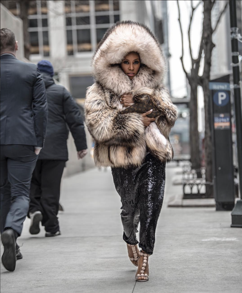 June Ambrose was another Fashionista who stepped out stylishly every day of New York Fashion Week. The stylist and fashion icon paired sequin pants with one of her signature over the top furs and sandals. Ms. June gets it right every time!