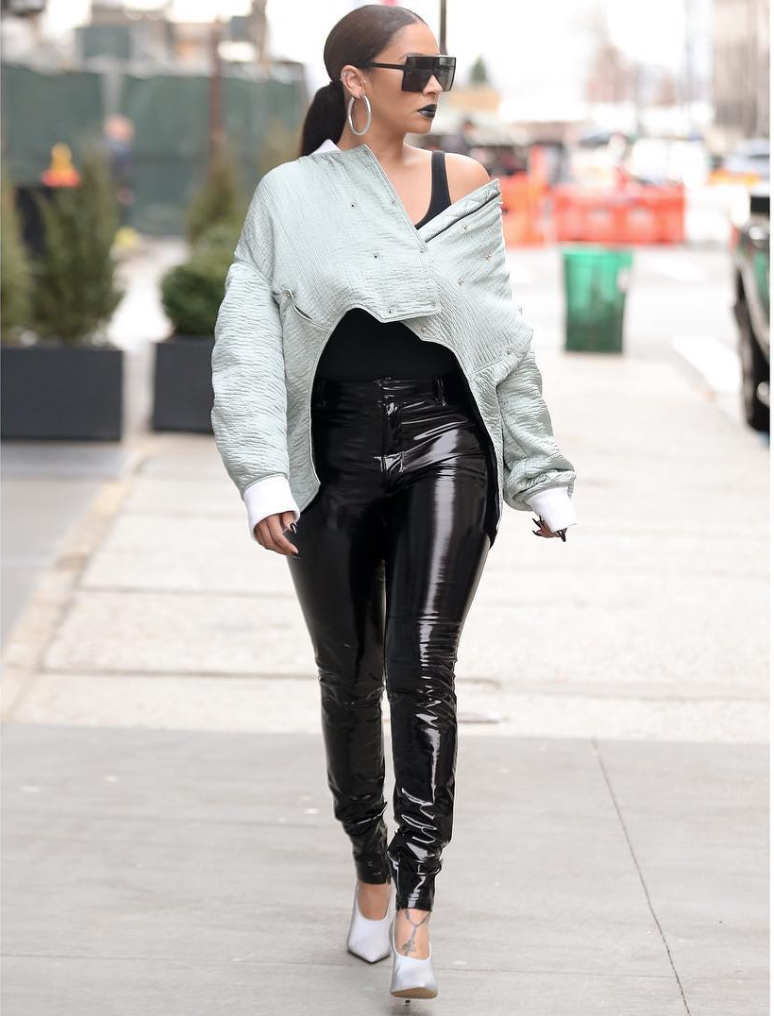 Come through strut! We know Lala doesn’t play, especially when it’s fashion week! Everyday she came with the heat. Closer to the end of the week she hit the streets outfitted in Esteban Cortazar adding her own spice to the top by letting it hang off the shoulder. The latex pants did wonders for this look with the dark lip and shades.