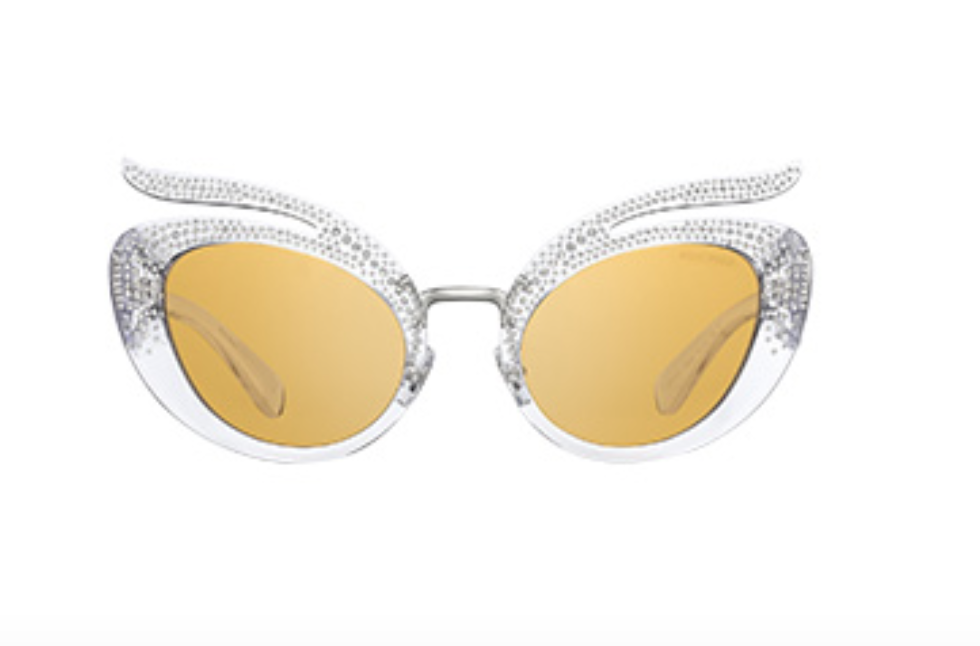 As usual, Monica had to accessorize with a pair of fun sunnies. She opted for $910 crystal embellished Miu Miu shades with a yellow lenses. The cat-eye shaped frames definitely added some pizzaz to her ensemble in addition to the jacket!