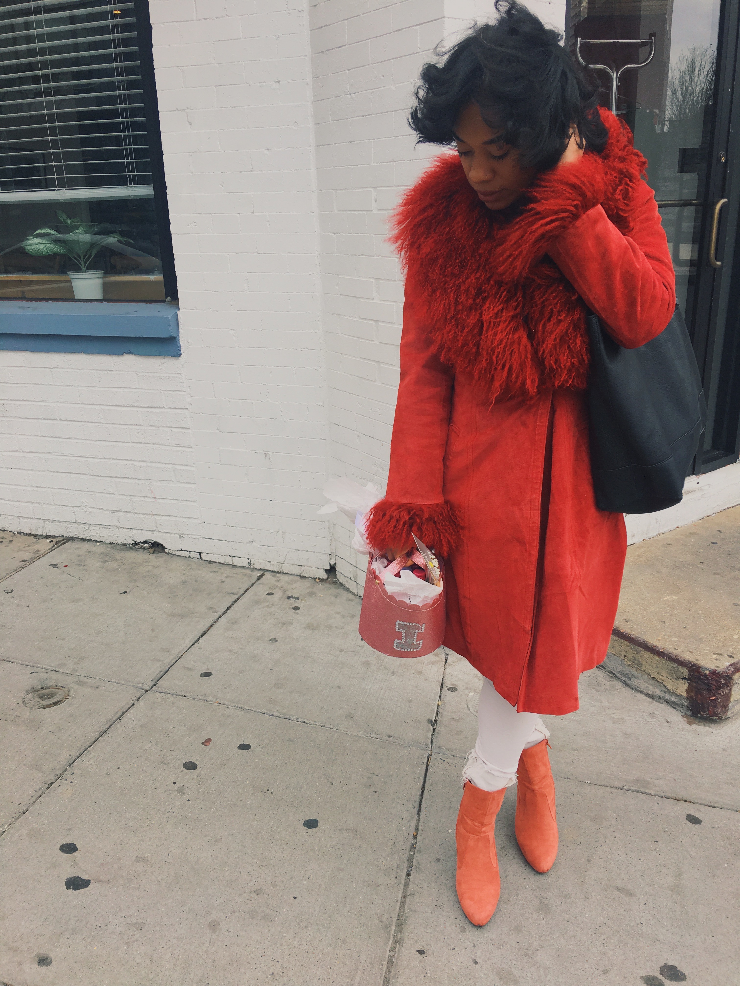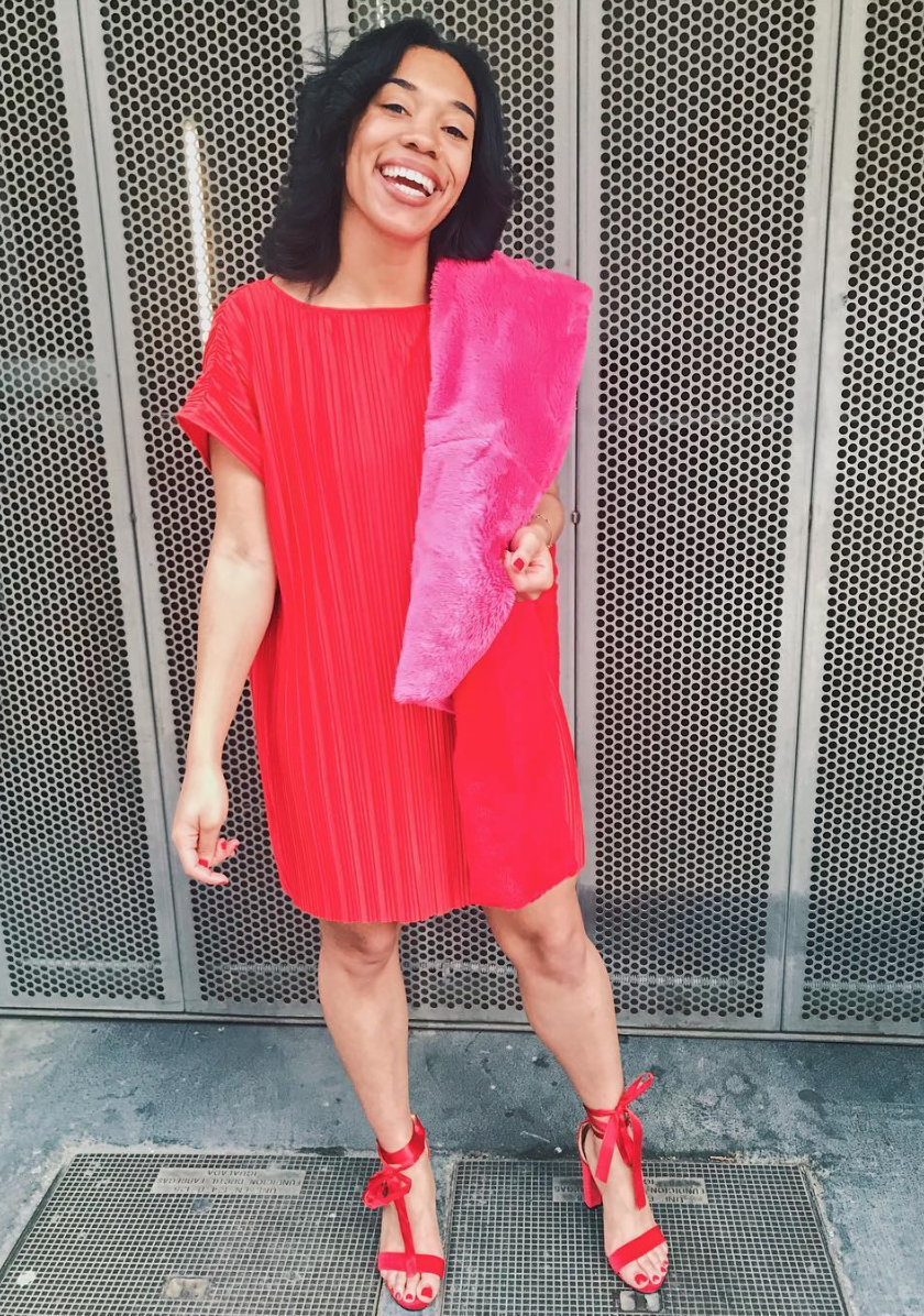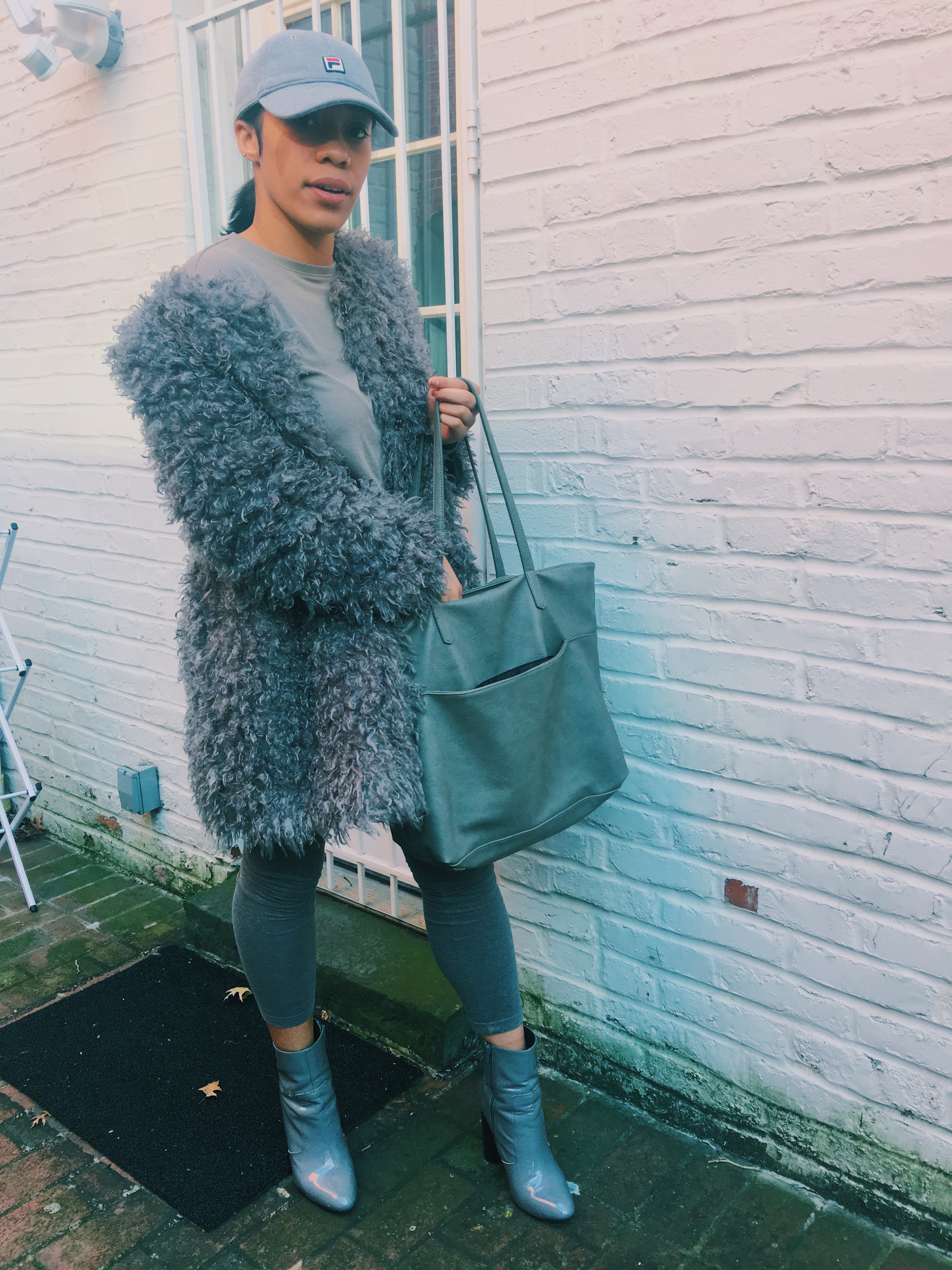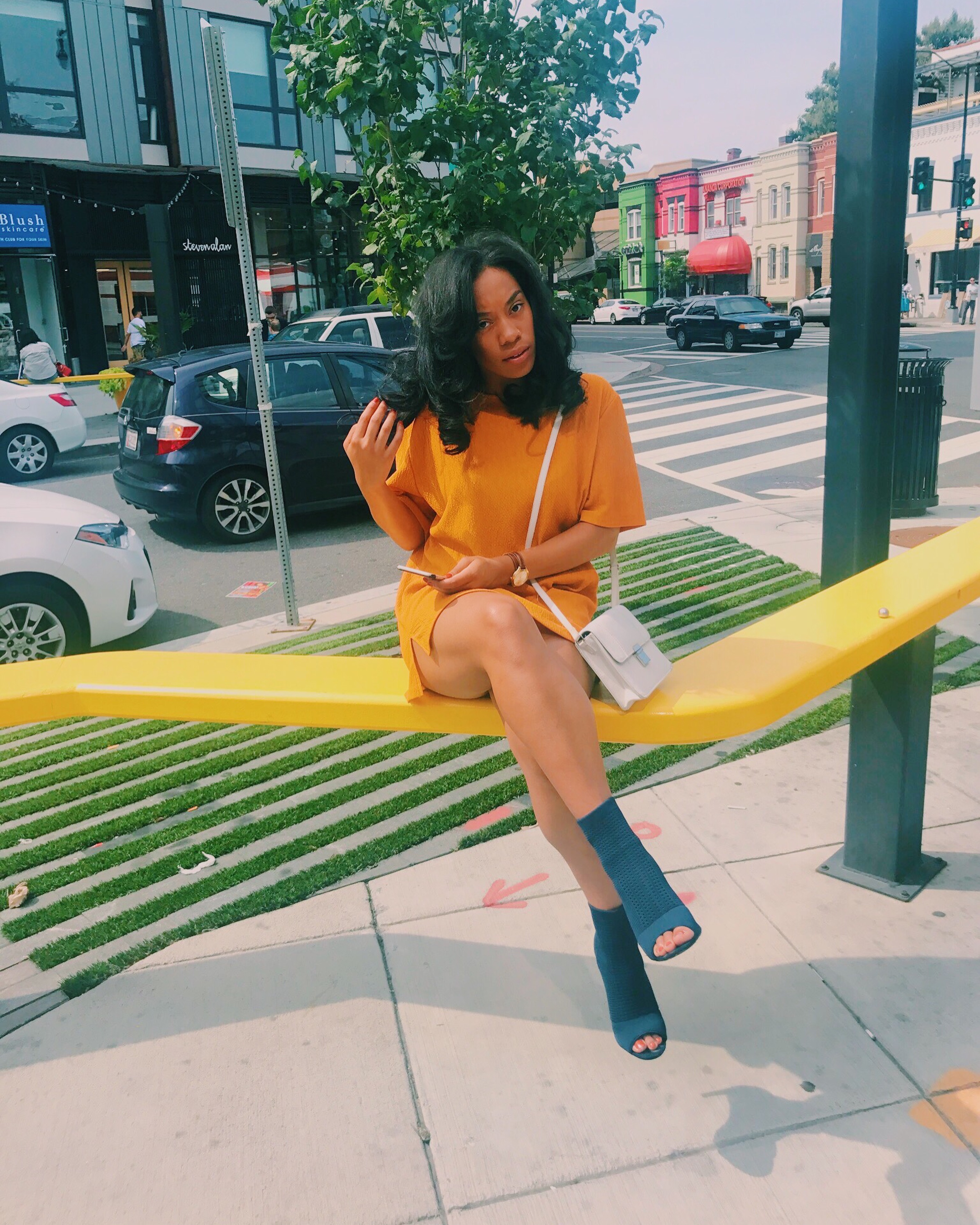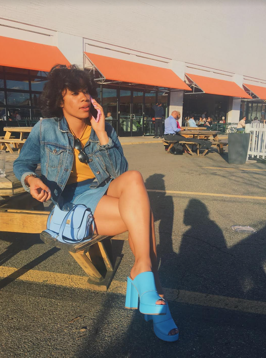 She writes, “My daily style is instinctual to how I am feeling. I like to stick with solid colors paired with statement pieces -such as a pair of shoes or a purse to complete my look.”