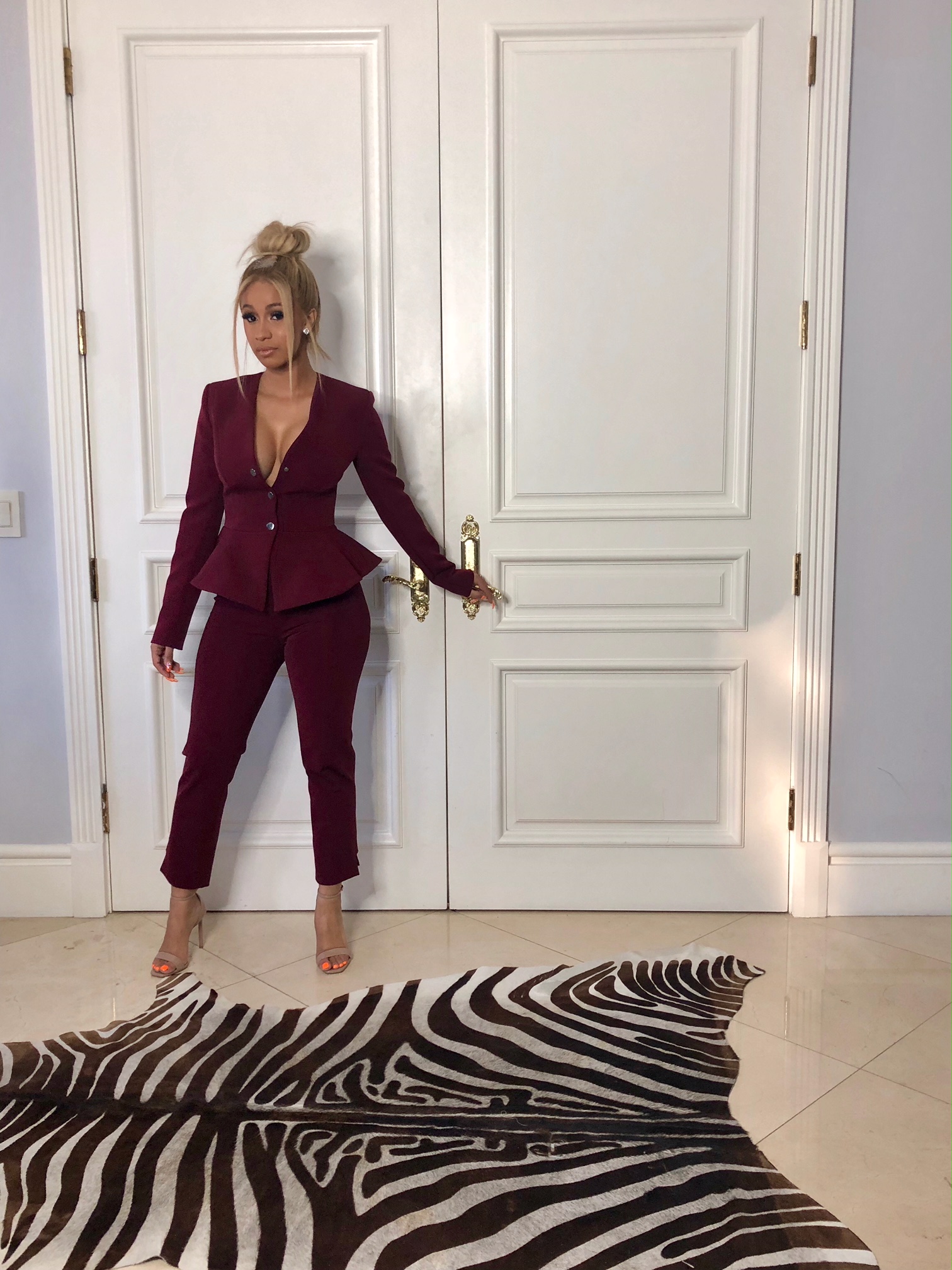 Cardi B in Cushnie Et Ochs (13, 647 Likes)Cardi’s fashion game has been extremely up to par lately and she shows no signs of slowing down. She glowed in a Cushnie Et Ochs burgundy peplum pants suit and YSL sandals. This look served every bit of class from Cardi, not to mention her new blonde hair that coordinated so perfect with this look. You all loved it too! @kissmycash_92 wrote, “Amazing look! Chic and classy,” while @fashionafterparty wrote, “She looks amazing, even down to the bright toe polish with the burgundy suit.” Cardi, you killed this!