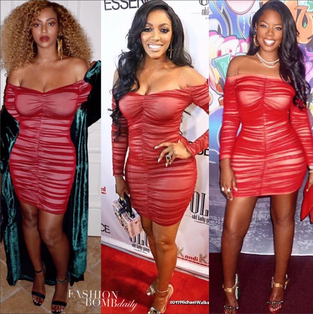 It’s a 3-way fashion showdown for this hot red House of CB stretch tulle dress! These 3 ladies all flaunted their curves in this off-the-shoulder number. Retailing for only $179, these fashionistas prove that you can serve in designer or in less expensive threads like the bomb products offered at House of CB.