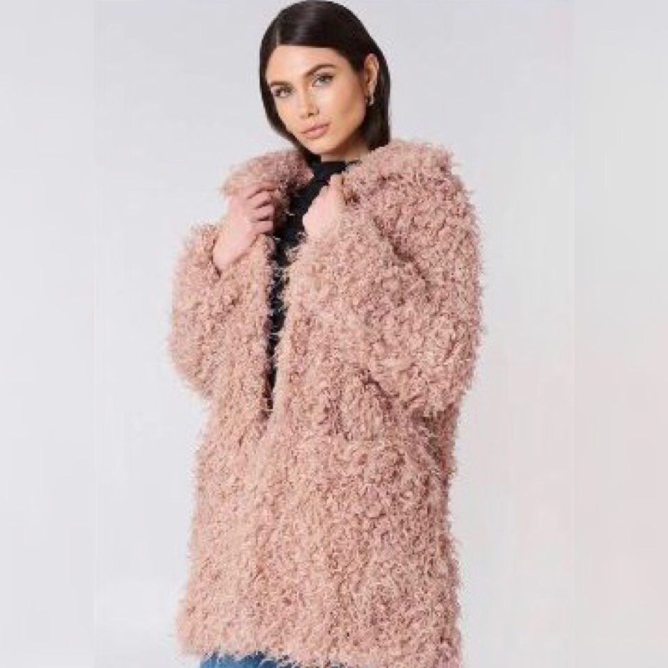 Cop her look for a steal with a $105 Na-Kid Faux Fur Coat, an $40 ASOS Denim Dress, and $119 Kendall + Kylie Boots: