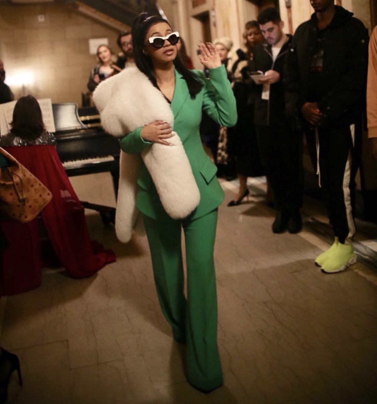 Cardi B who has been storming New York Fashion Week in head turning ‘fits. She attended the Christian Siriano show in a green ensemble from the brand. Get her look for only $150 courtesy of Topshop: