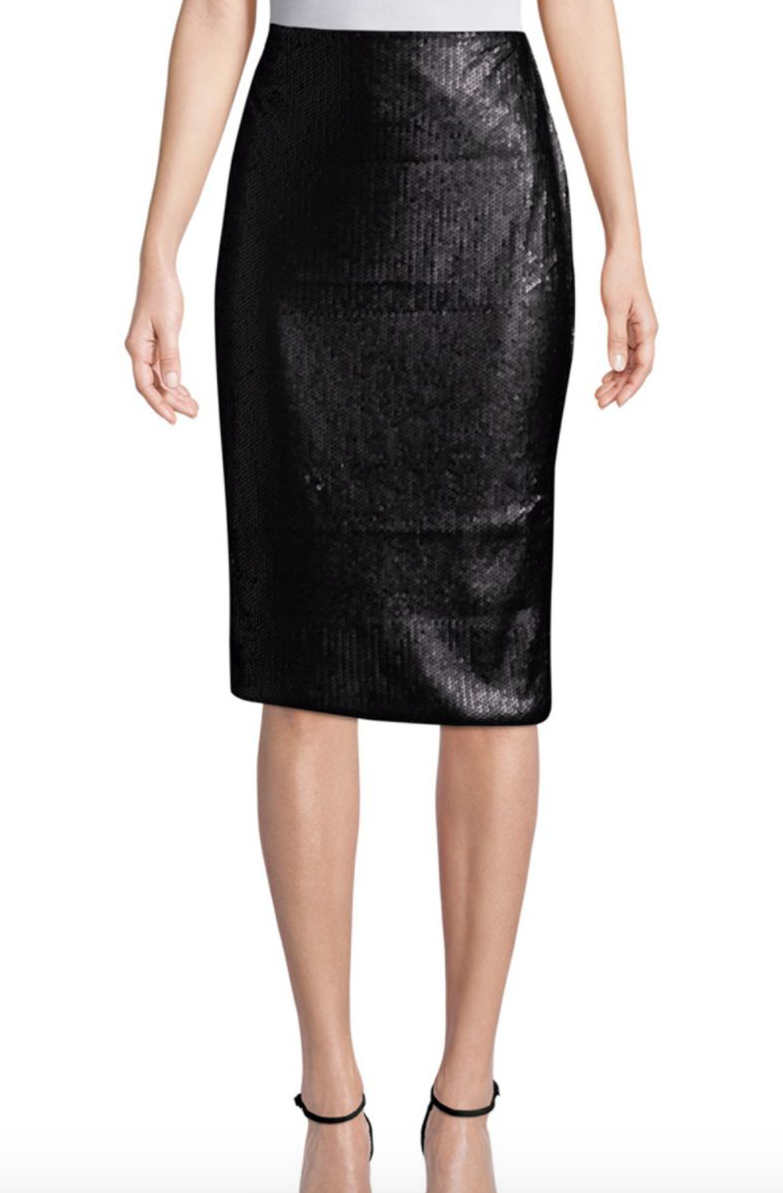 You can get her look for $200 with a $31 lace top from Express and this $40 sequined skirt by Mink Pink: