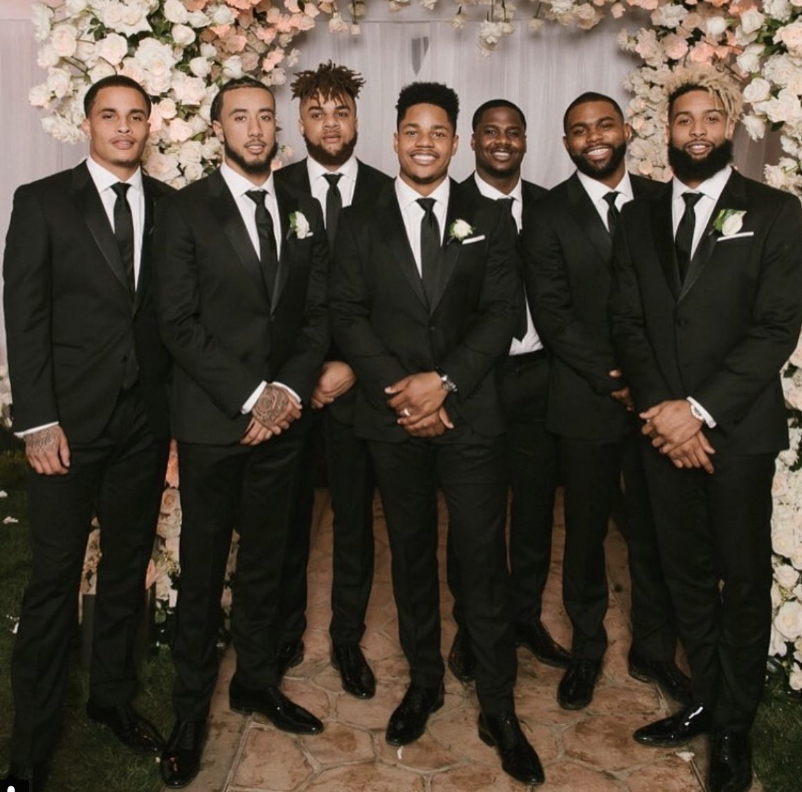 The groomsmen, better known as fellow New York Giants players kept it dapper in Hugo Boss suits like Sterling.