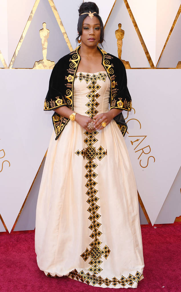 Tiffany Haddish made a royal entrance honoring her late father’s roots in an Eritrean traditional grab. Truly stunning! What better way to honor her people and her father than on the Oscars carpet? Tiffany never fails to amaze us.