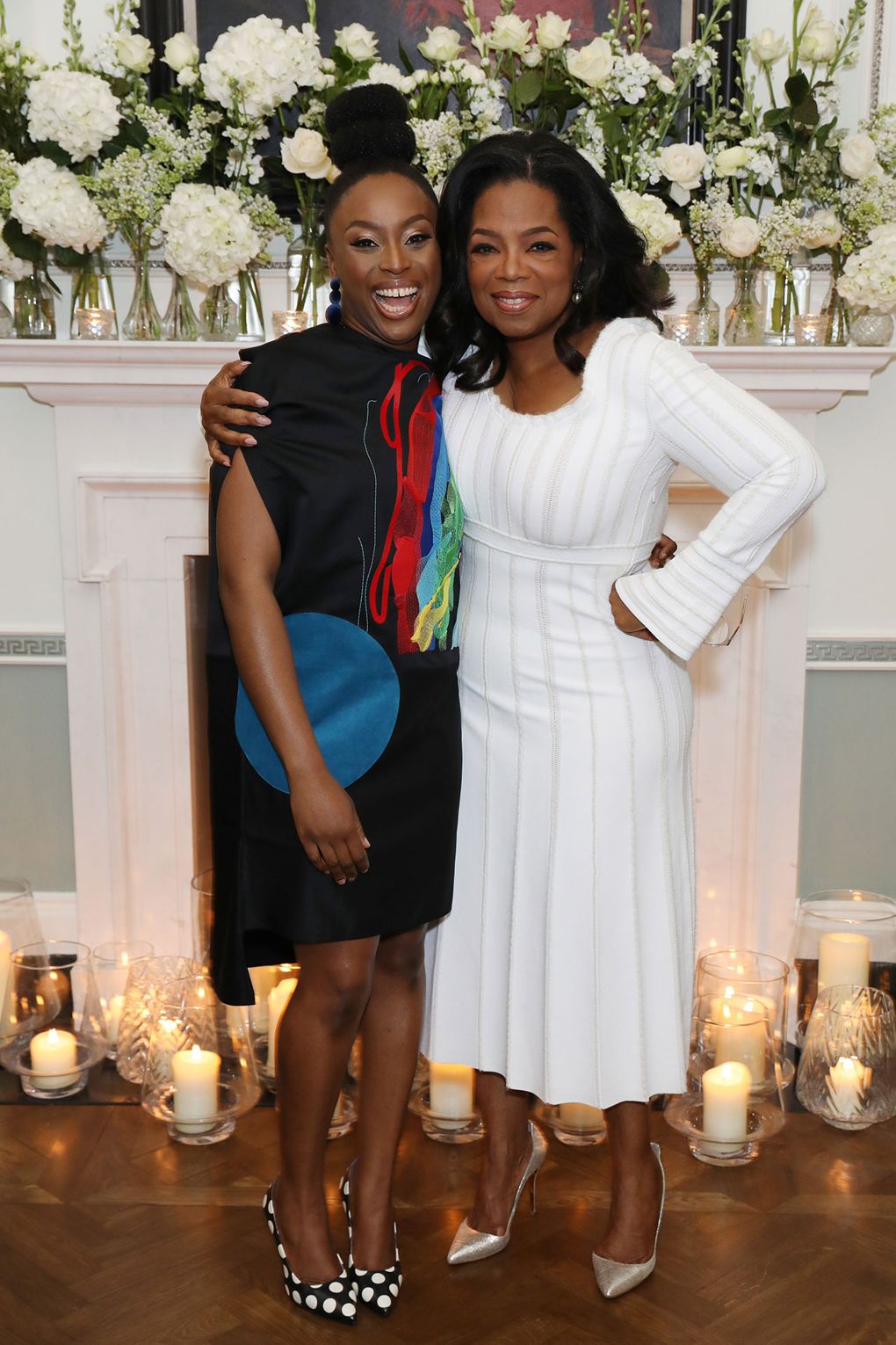 Chimamanda Ngozi Adichie recently attended a private Afternoon tea party in honor of Oprah hosted by British Vogue’s Edward Enninful. For the occasion, she was artsy and colourful in Nigerian brand IDMA-NOF’s debut S/S17 ‘5 Eyes’ Collection.