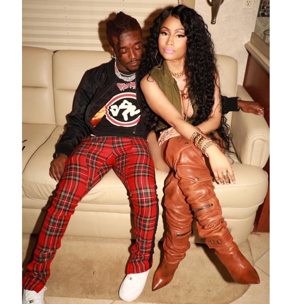 Nicki kicked it with Lil Uzi Vert when she wore the boots teamed with an olive green bodysuit and long curly tresses.