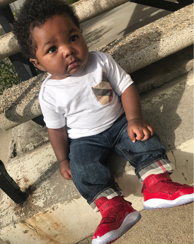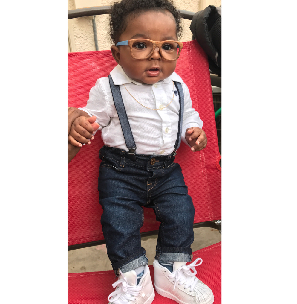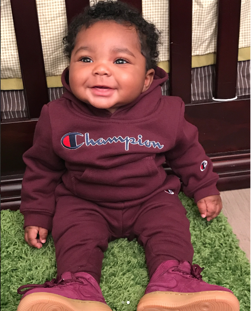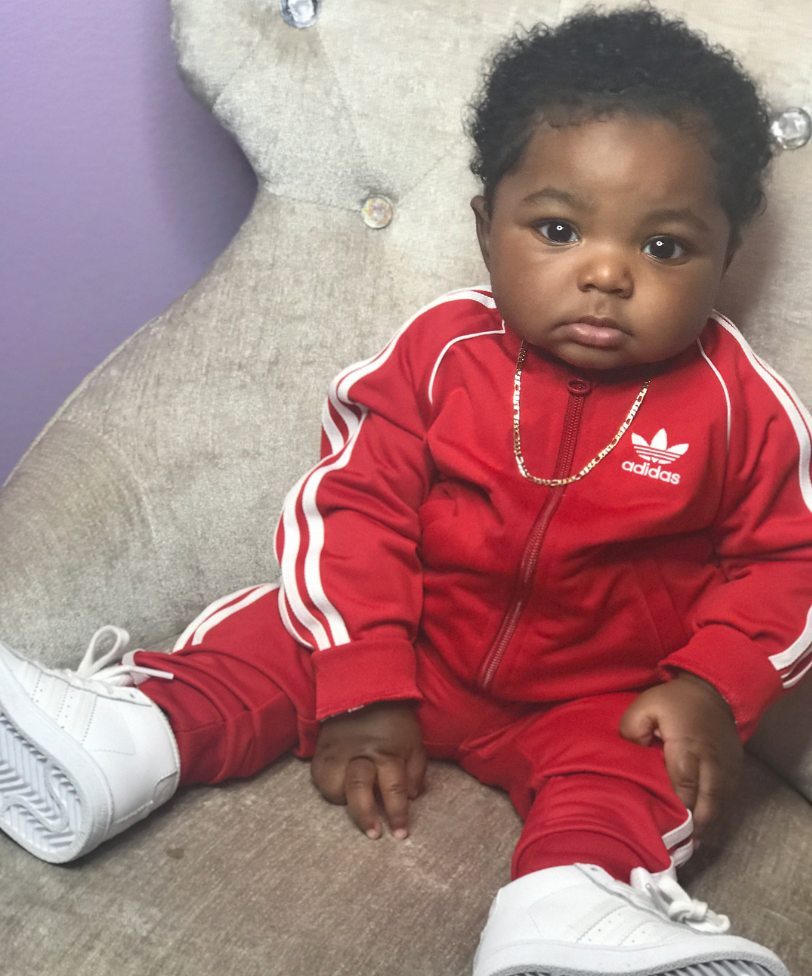 This baby boy keeps his outfits very casual and classic rocking Champion sweatsuits, Burberry threads, and more. He melted our hearts with his adorable face and all the personality he brings to his looks. When we posted Santana on Instagram he sparked up some major baby fever. @gennparis wrote,”He is just too cute for words!” @ladybuggalou added, “Awwwwwwwww!!! Those eyes are just so full of goodness and light!”