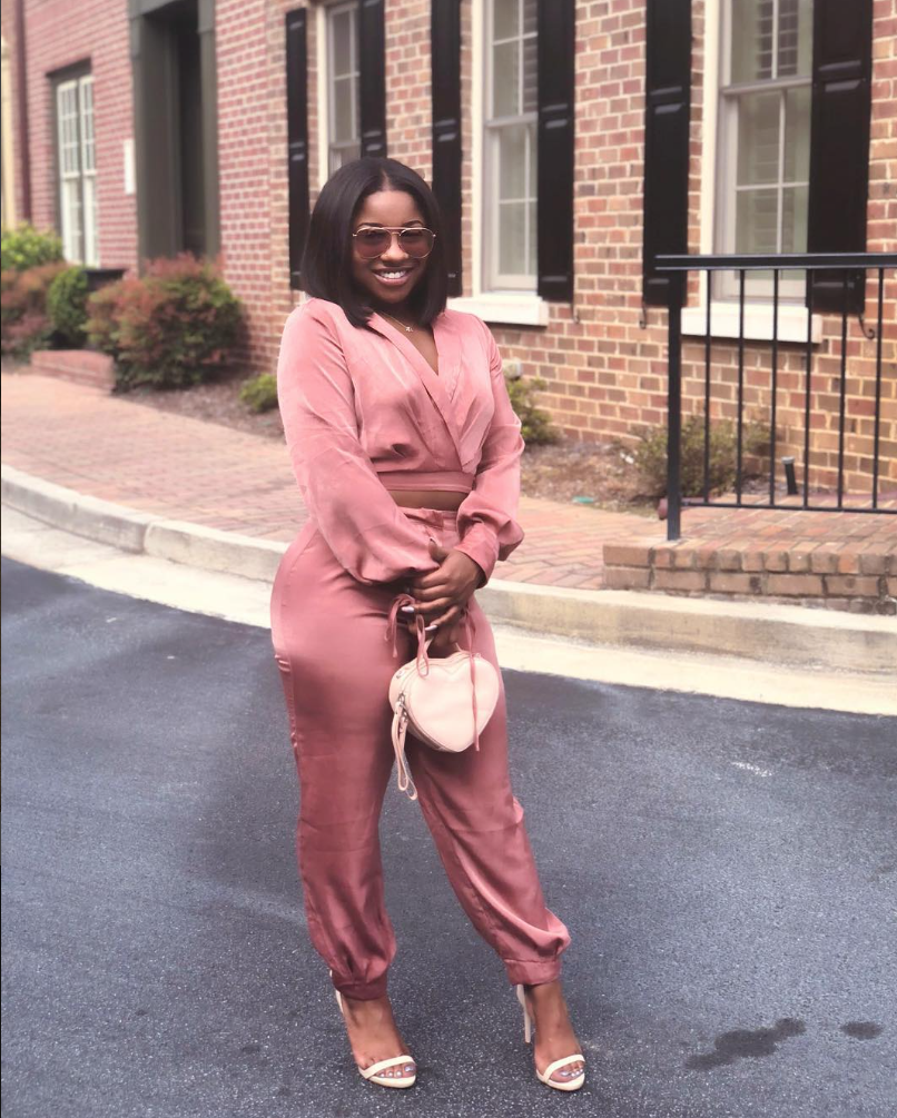 Co-ord sets are on trend for Spring and Reginae Carter sure knows how to rock one. She stepped out in style on Easter Sunday in a Fashion Nova pink satin set paired with matching sunnies, sandals, and a mini purse.
