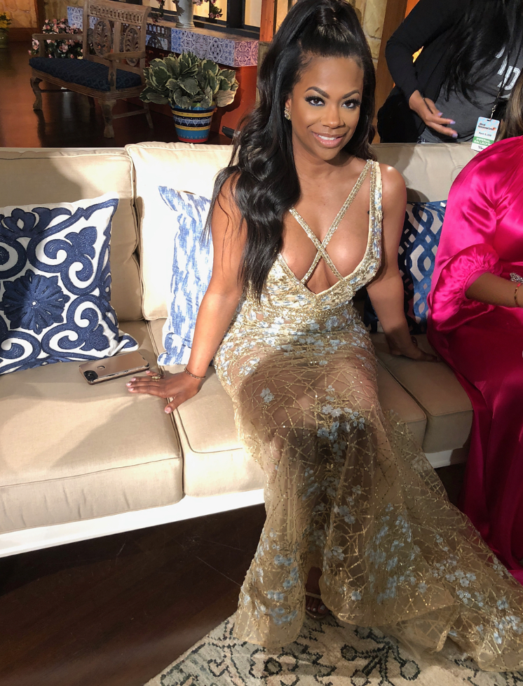 The Housewives of Atlanta Reunion style was so nice it landed in our top 5 twice! Kandi opted for an embellished Mac Duggal gown for the reunion show. The deep V plunge dress had a bedazzled criss cross neck detail. Kandi’s glam matched the gorgeous dress—with a high ponytail and half of her hair down and a full on beat face, she looked red carpet ready. On Instagram, @dupesfitnessworld wrote, “This is one of her best looks if not the best… She looks stunning!!!” She was a vision, indeed.