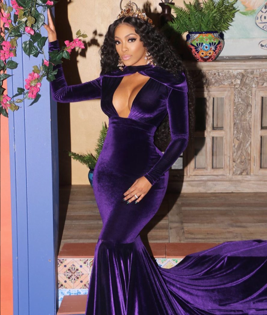 Hello curves! Porsha Williams arrived to the Real Housewives of Atlanta reunion looking regal in velvet Beeombi dress. The stunning curve-hugging dress had a cutout that stopped at Porsha’s waist and showed a bit of classy cleavage. Some of our readers dubbed her as the best dressed at the reunion, what do you think?