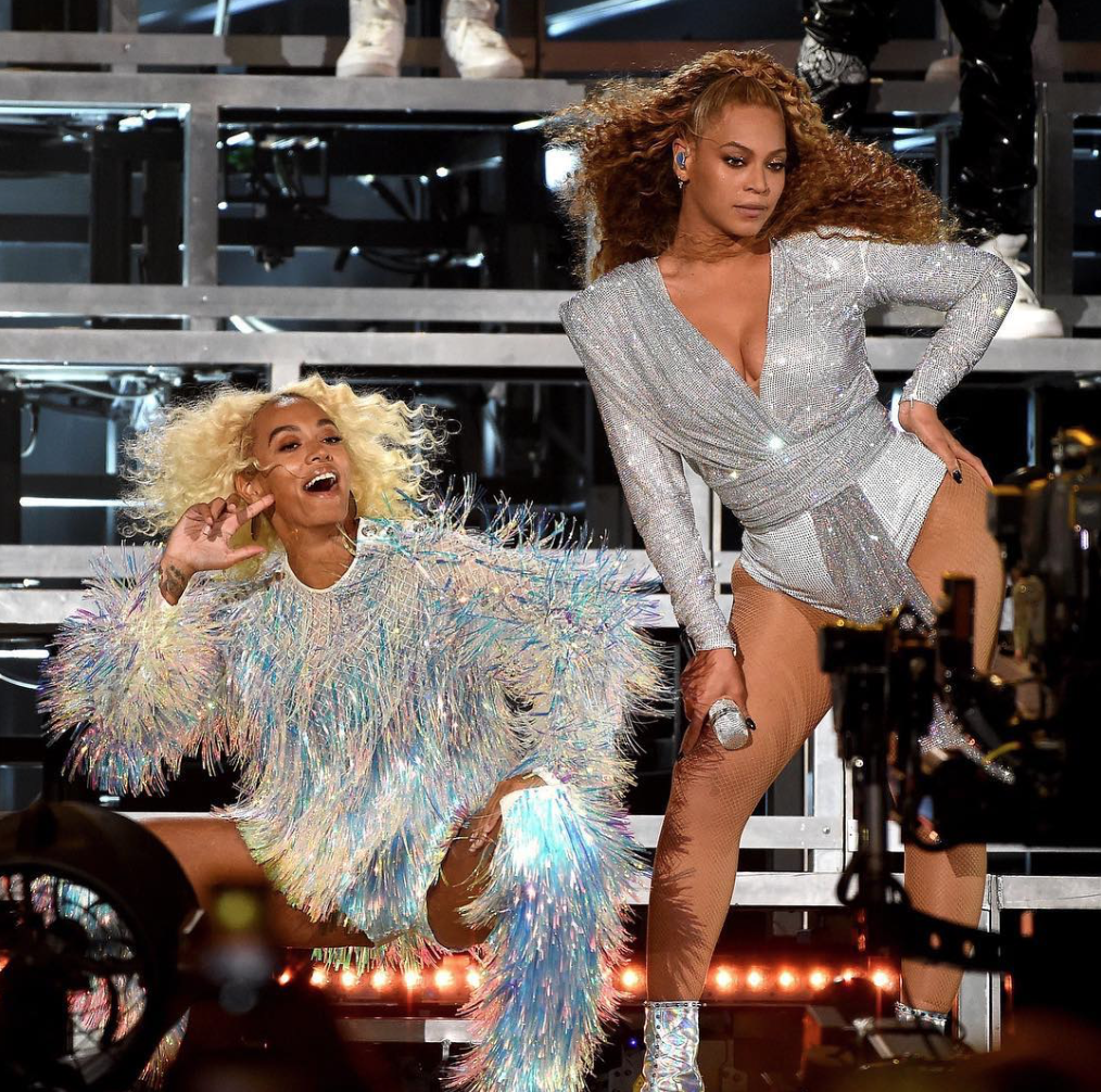Solange also made another appearance this week. The Knowles sisters were both shining, Solange wore a fringe iridescent custom Balmain look with matching boots, while Bey kept on her plunging neck bodysuit. These two are a dynamic duo, indeed!