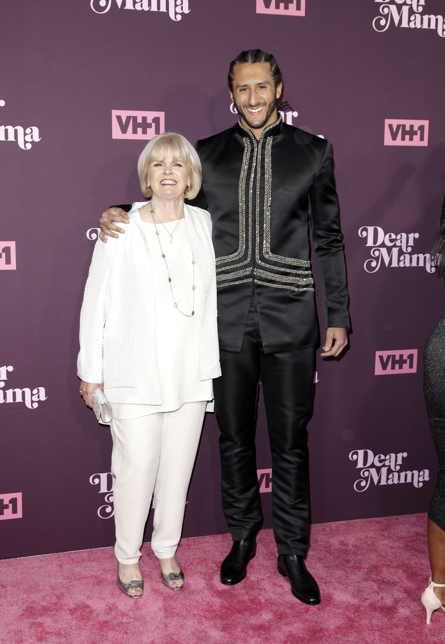 Last, but not least Colin Kapernick was all smiles on the carpet with his mom in a silk embellished jacket. His mom looked beautiful in an all white ensemble.