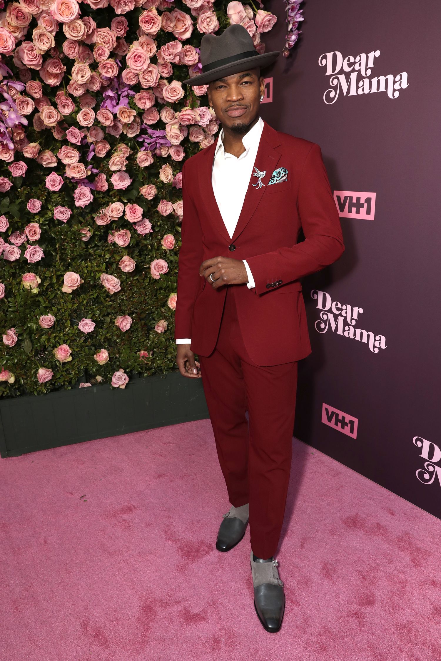 Neyo kept it dapper in a red tux and his signature fedora hat.