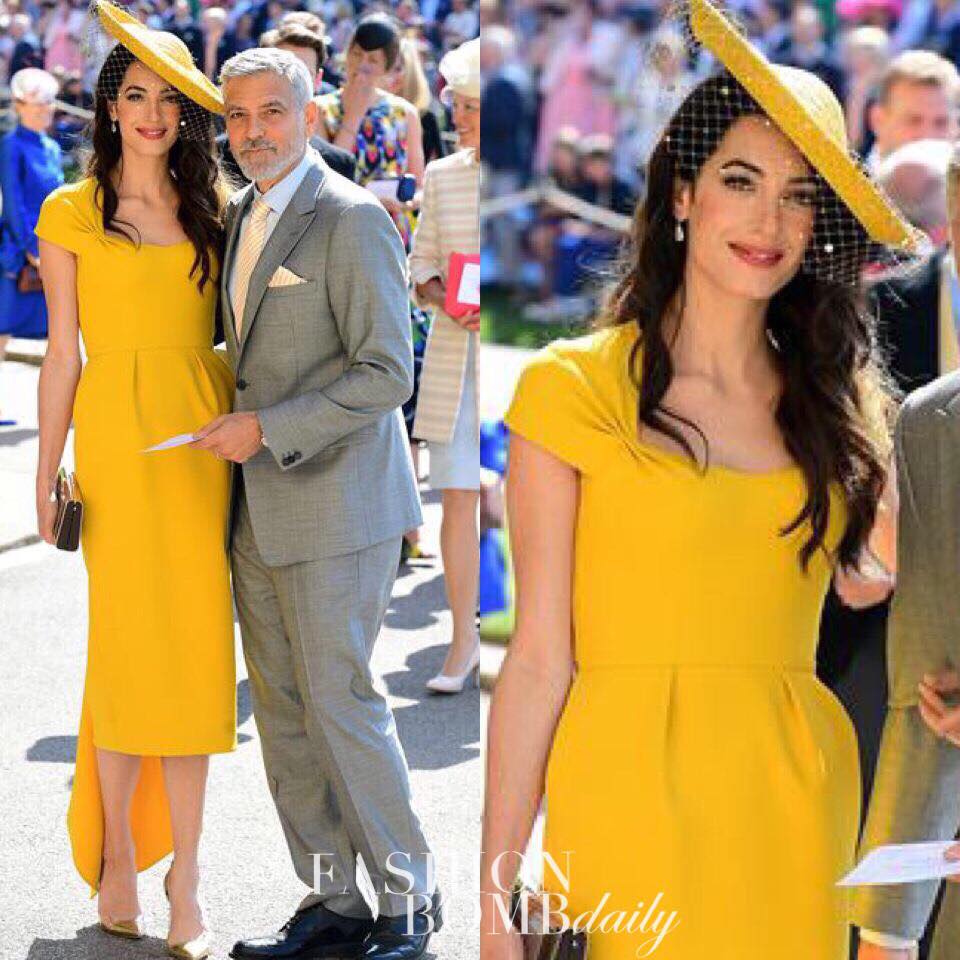 Amal Clooney opted for a bold dandelion yellow Stella McCartney dress teamed with a matching hat with a net slightly covering her face. She sure turned heads with this number!