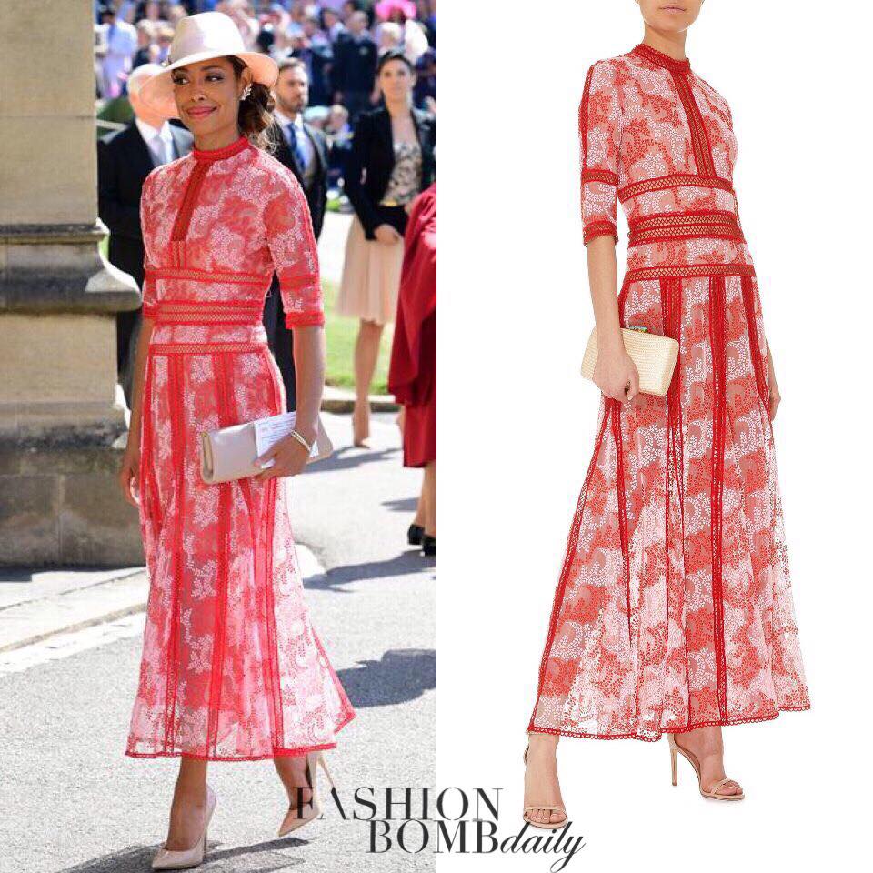 Gina Torres opted for a red lace Costarellos frock as she entered the doors of the Windsor castle. This dress was perfect for the occasion, and was perfectly tailored. She looked very fab!