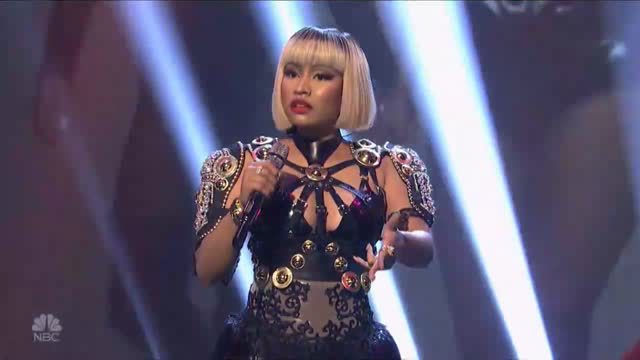 Nicki Minaj hit the stage on Saturday Night Live’s finale last weekend in a custom Vex Clothing bodysuit covered in a harness-like top and gold embellished shoulder pads by On Aura Tout Vu. She completed her bomb lookwith a blonde banged bob and a red lip. Nicki is indeed back, and these looks and performances are proving just that. See the video of the performance here!
