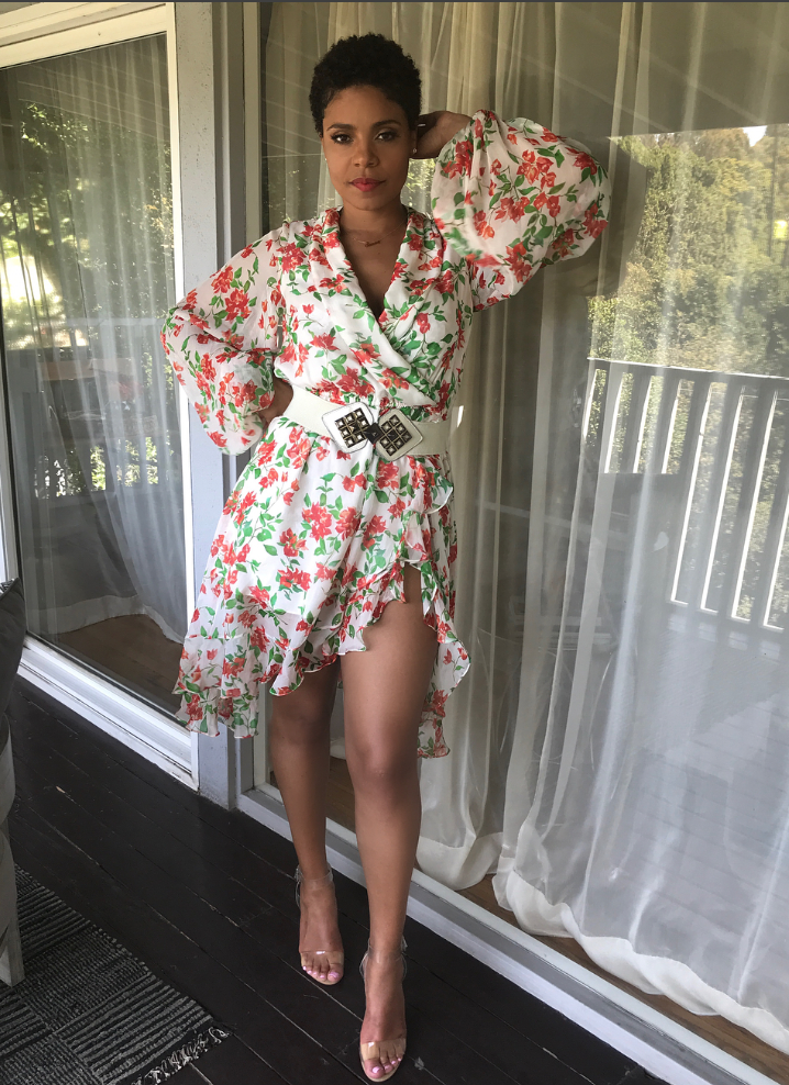 Sanaa Nathan is working this cut! She looked summer ready in a floral Caroline Constas belted dress. The style and flow of the dress looked so airy and effortless. Sanaa completed her look with a red lip and clear sandals. Cute!
