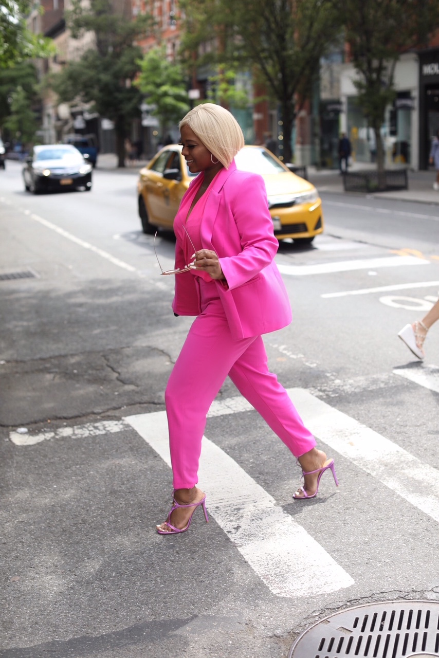 *To film a documentary, I wore a pink House of CB suit and a pink top. Someone said I should never wear it again, but I love it!