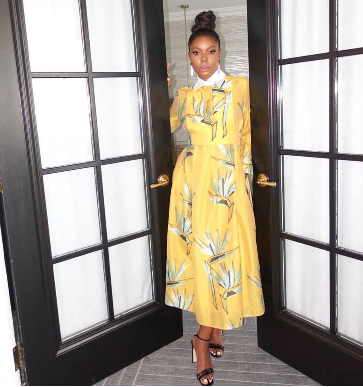 Gabrielle Union struck a pose for the ‘Gram glowing in a Fendi ‘Bird of Paradise’ printed dress. Yellow is absolutely Gabby’s color! She teased at her previous Met Gala glam look with a high bun and the bright yellow, and we’re loving it! She completed her look with Sergio Rossi sandals. Stunning!