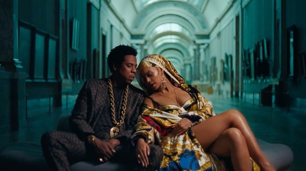 The visual ouevre d’art set at the Louvre after hours shows the pair flexing with their dancers in the historical museum’s hallowed halls, rapping, smizing, and dancing next to iconic masterpieces including the Mona Lisa, Venus de Milo, The Coronation of Napoleon, and more.