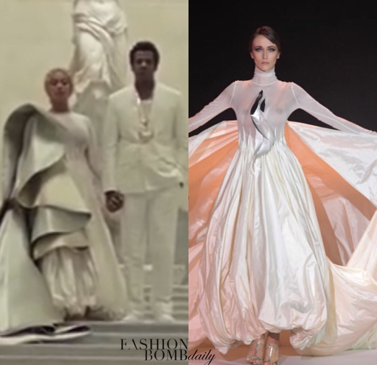It was all about Stephane Rolland Spring 2018 couture and an Alexis Mabille Cape for Beyonce as she and Jay danced in front of The Winged Victory of Samothrace.