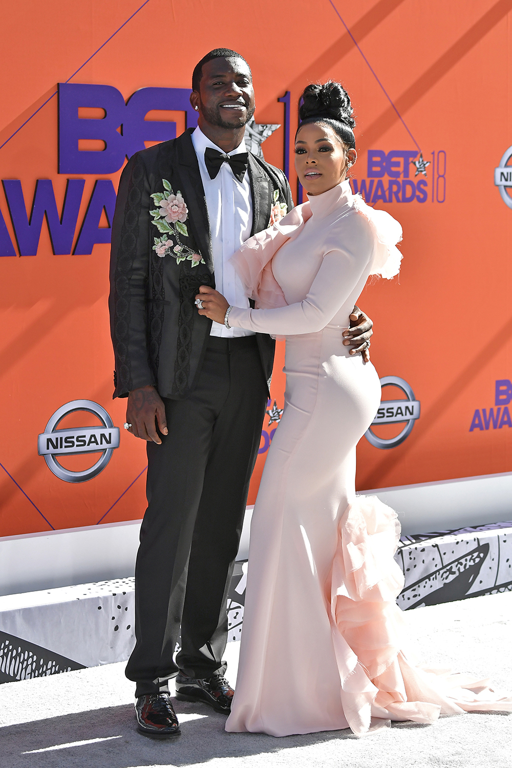 Bomb couple Gucci Mane and his wife Keyshia Ka’Oir complemented each other in bomb looks. Keyshia switched it up and wore a long sleeve dress with ruffled sleeve and train details and a natural glam face. Gucci wore a rose embroidered suit.