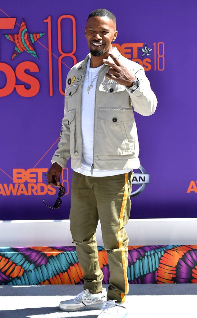 The host of the night, Jamie Foxx was all smiles in a DSquared2 ensemble.