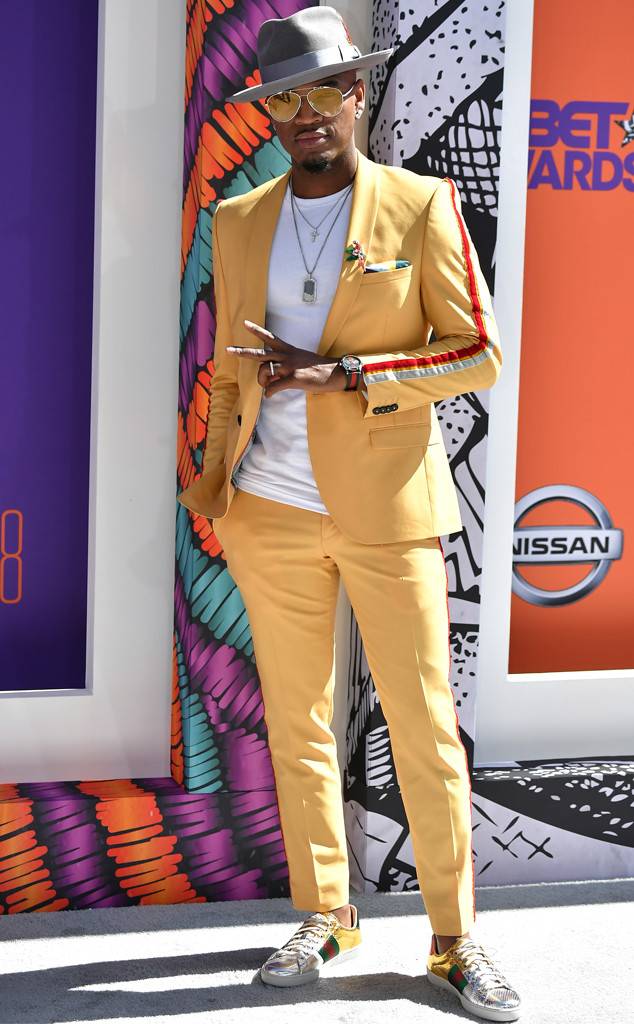 Ne-yo hit up the awards in a dapper Gucci suit paired with metallic kicks by the brand and a fedora.