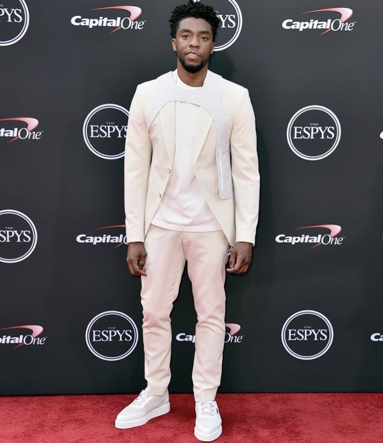 All white never steers anyone wrong when it comes to fashion. Chadwick Boseman proved that notion in this crisp Louis Vuitton Spring 2019 look.