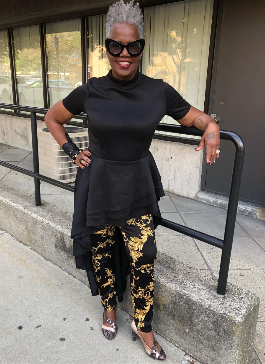She writes, “I am 63 but never dress the way many folks think ladies my age “should” dress! I opt for pieces that are simultaneously youthful and timeless. I also love vintage and thrift store finds that are unique and classic. I love blending high and low and enjoy making trends mine. It’s all about having fun with fashion and style!”