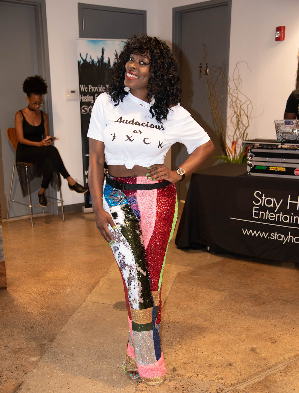 And Ayanna of Audacious & Feral represented for her brand in a logo’d tee and multicolored sequin pants. She gifted me a pair and I can’t wait to wear!