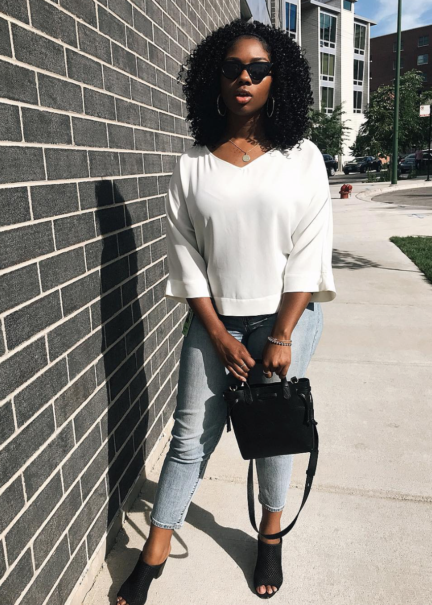 She writes, “I describe my style is as simple as it gets but flashy at the same time. I like to usually have one stand out piece whether it be a bright blazer or fun shoes. And you can almost always catch me in some type of denim.”