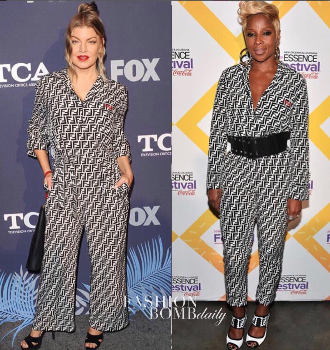 Happy Friday bombers and bombshells! The Fendi frenzy trend has been hot all year round and isn’t slowing down. Recently Fergie and Mary J Blige wore the same $2,590 silk jumpsuit by Fendi with a contrasting FF-logo all over the ensemble.
