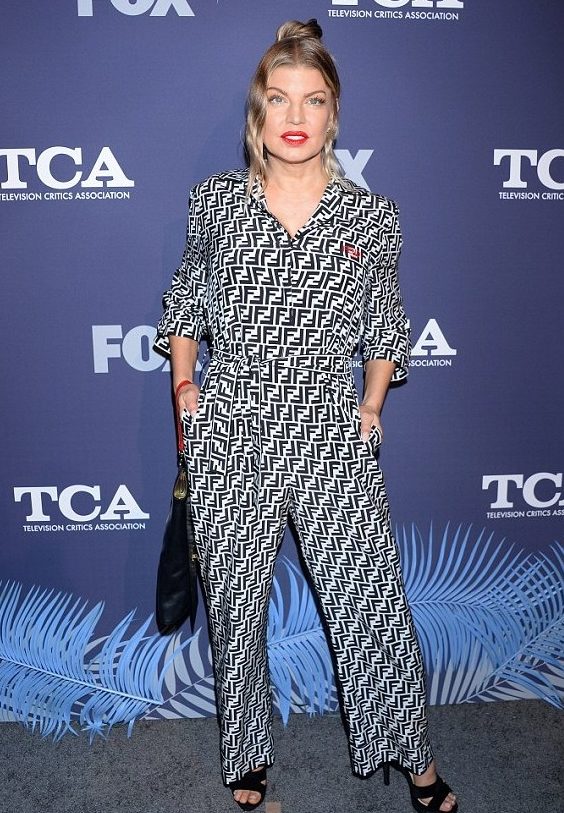 Fergie attended a recent FOX event rocking the jumpsuit with black shoes and a black clutch. Her red lip and red handle on her bag was a nice pop of color, but a red shoe would’ve sealed the deal on this look.