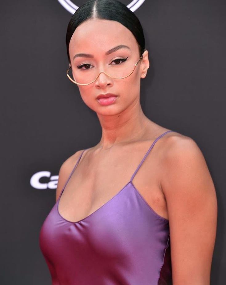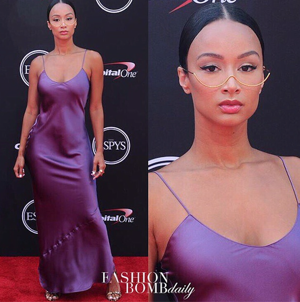 Draya paired her gold-trimmed wire glasses with a purple Nila Lotan dress. Stunning!