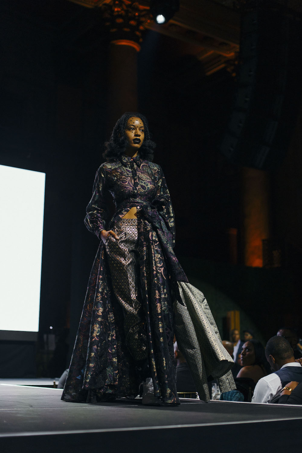 Fe Noel’s collection, called ‘A Queen’s Tale,’ focused on motherhood and the strength of a woman. She said, “It’s a story of my mom and how she came here from Grenada and created this life for herself, which then empowered me to be able to follow the same path and become an entrepreneur. Her support is what allowed me to do this and live out my dream, so this is my dedication and thank you to her.”