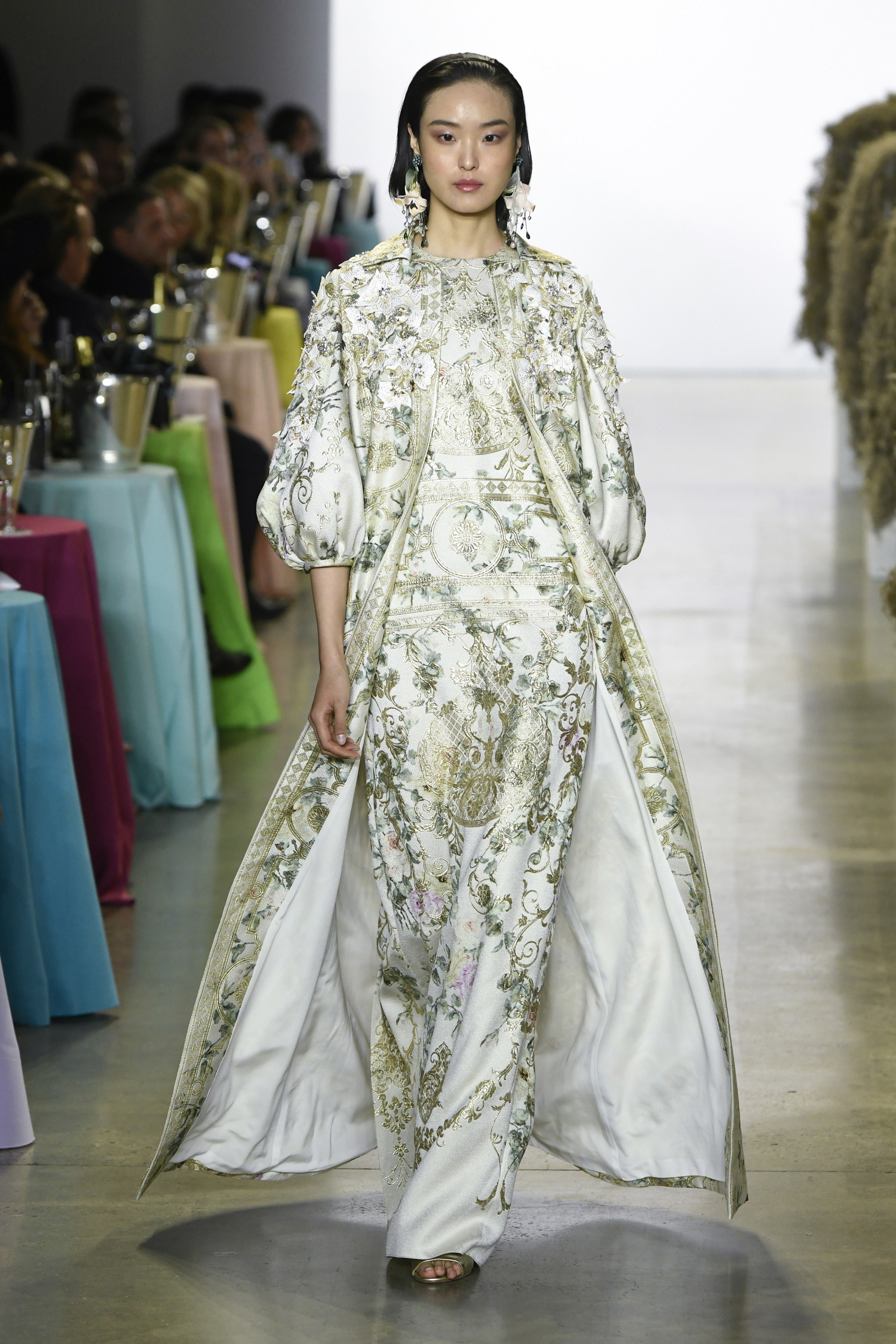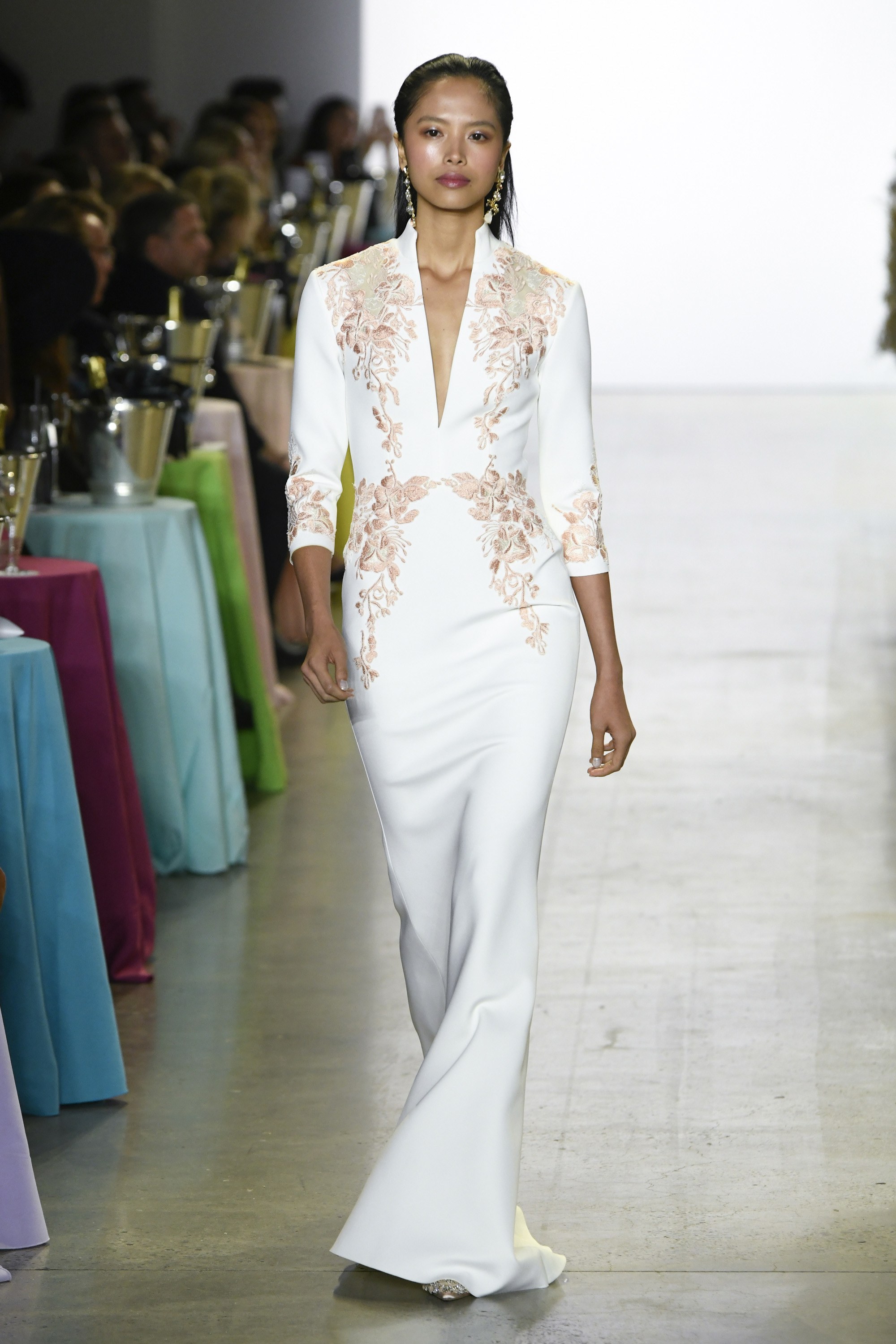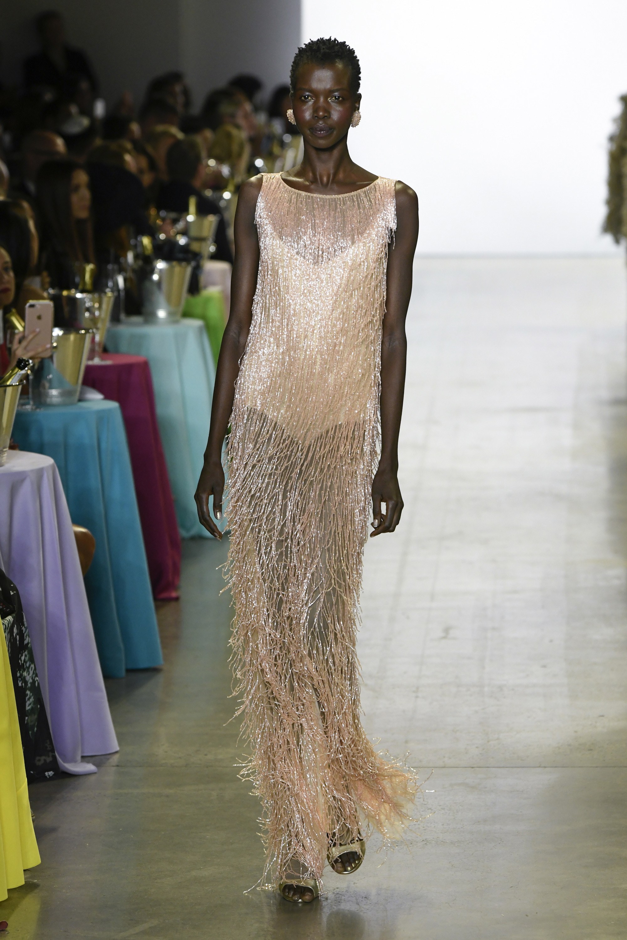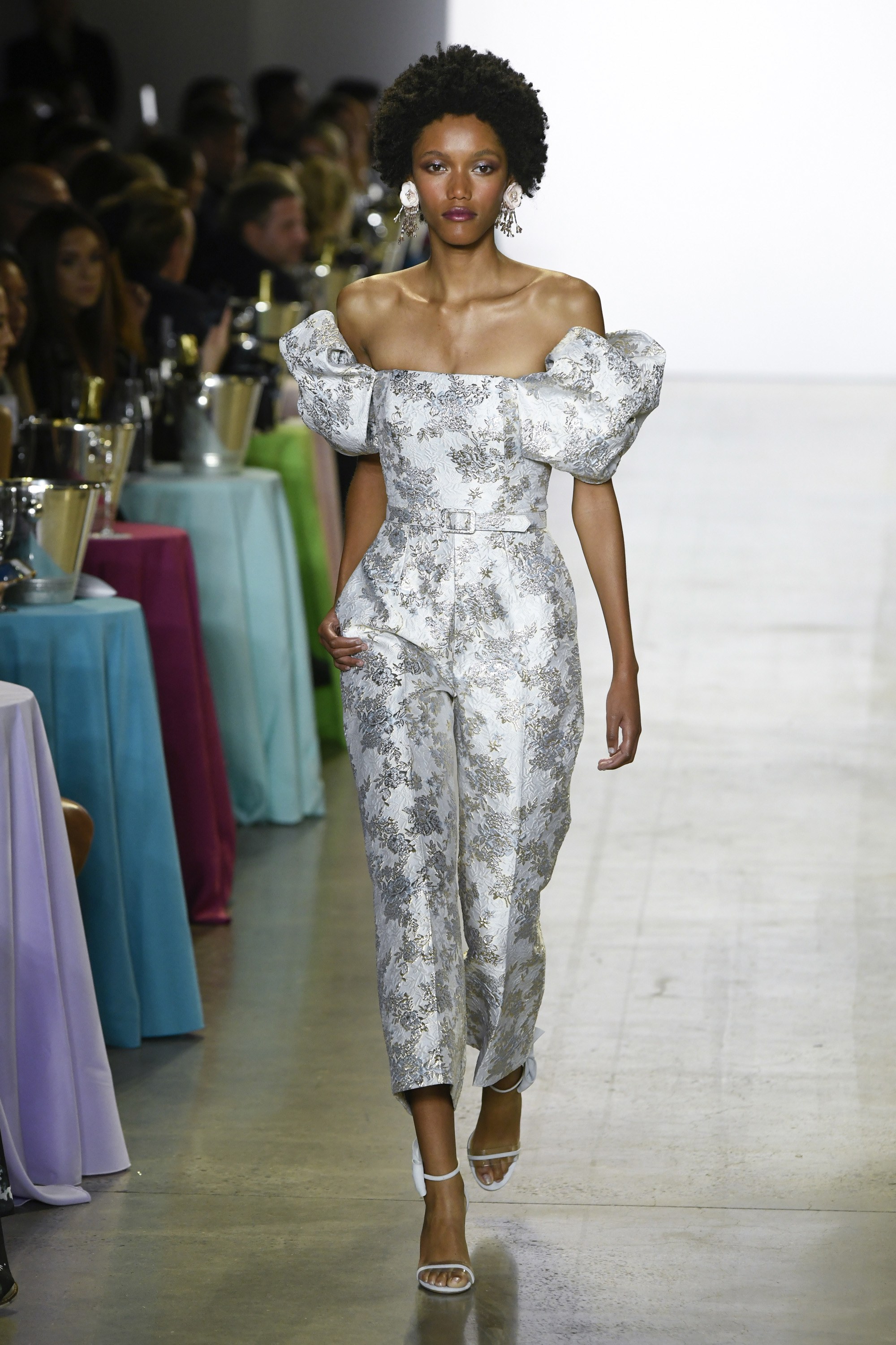 Mark Badgley and James Mischka, the duo designers who collectively make up the Badgley Mischka brand, were not only displaying their latest collection during this NYFW, but also celebrating 30 years in the fashion industry. The show, set up in an Alice in Wonderland-like setting, was complete with floral trees lining the middle of the runway and colorful tables and chairs for guests to sit and enjoy the show. Champagne was poured at each seat with a bottle on ice at each table setting. Guests included Caitlyn Jenner, Alec Baldwin, Fern Mallis, Sevyn Streeter, and an array of other fashion-loving onlookers.