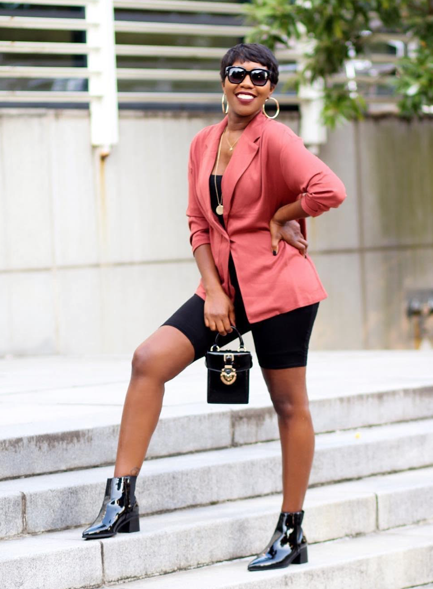 She writes, “I consider my style to be minimal, sleek, chic, and sexy. I wear a lot of basic pieces but I try to make a statement by mixing in some fun accessories, and a little color. I love a high heel, a fitted dress, and a bold lip! I’m also a mom with curves, so anything that accentuates those and makes me feel sexy, I’m all for it. My secret to always looking good is to wear clothes that fit and make sure your outfit is neat (no wrinkles)!”