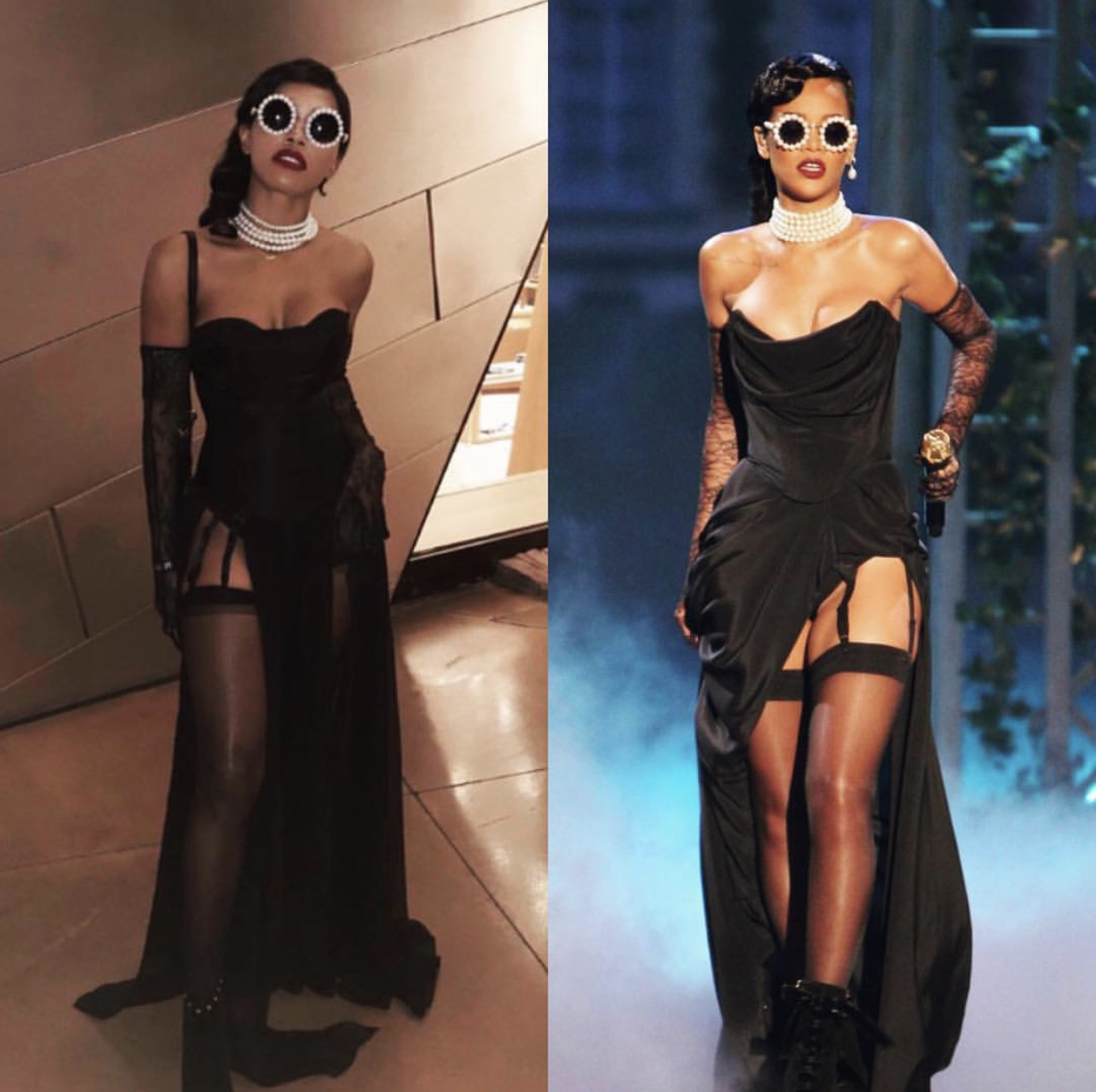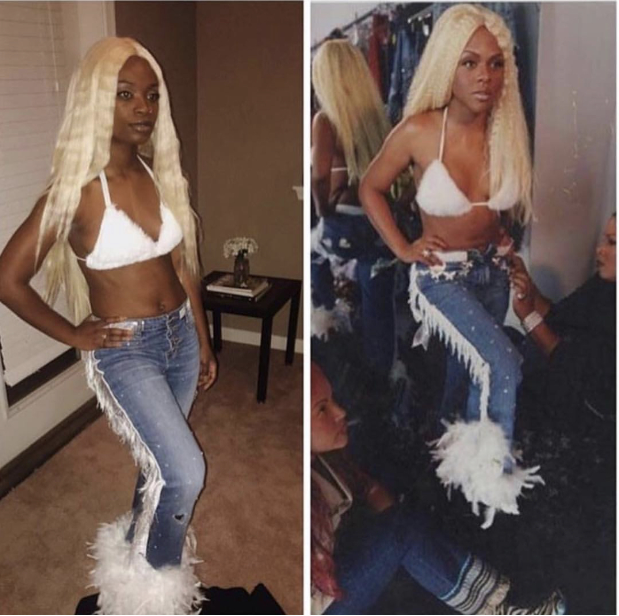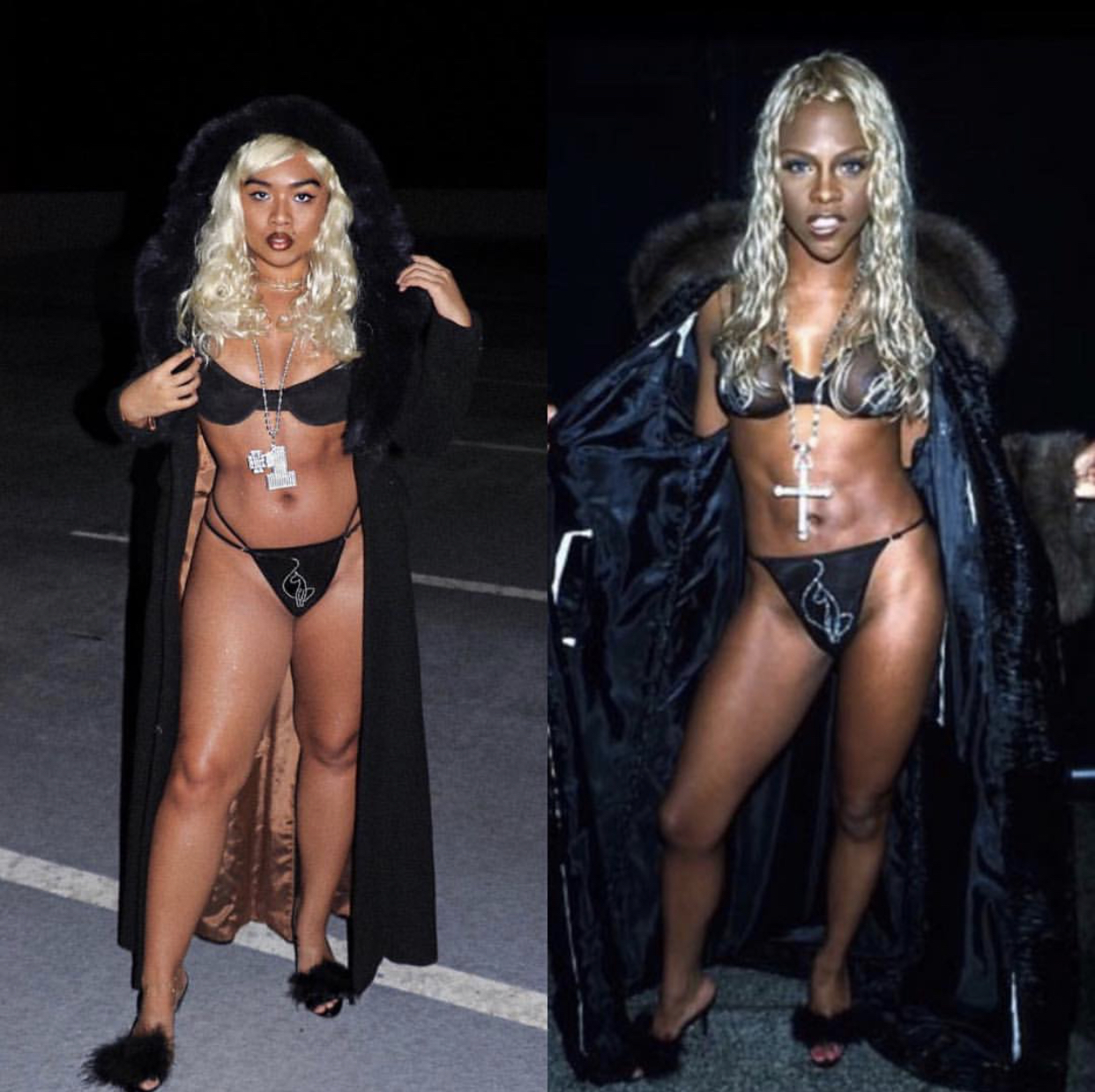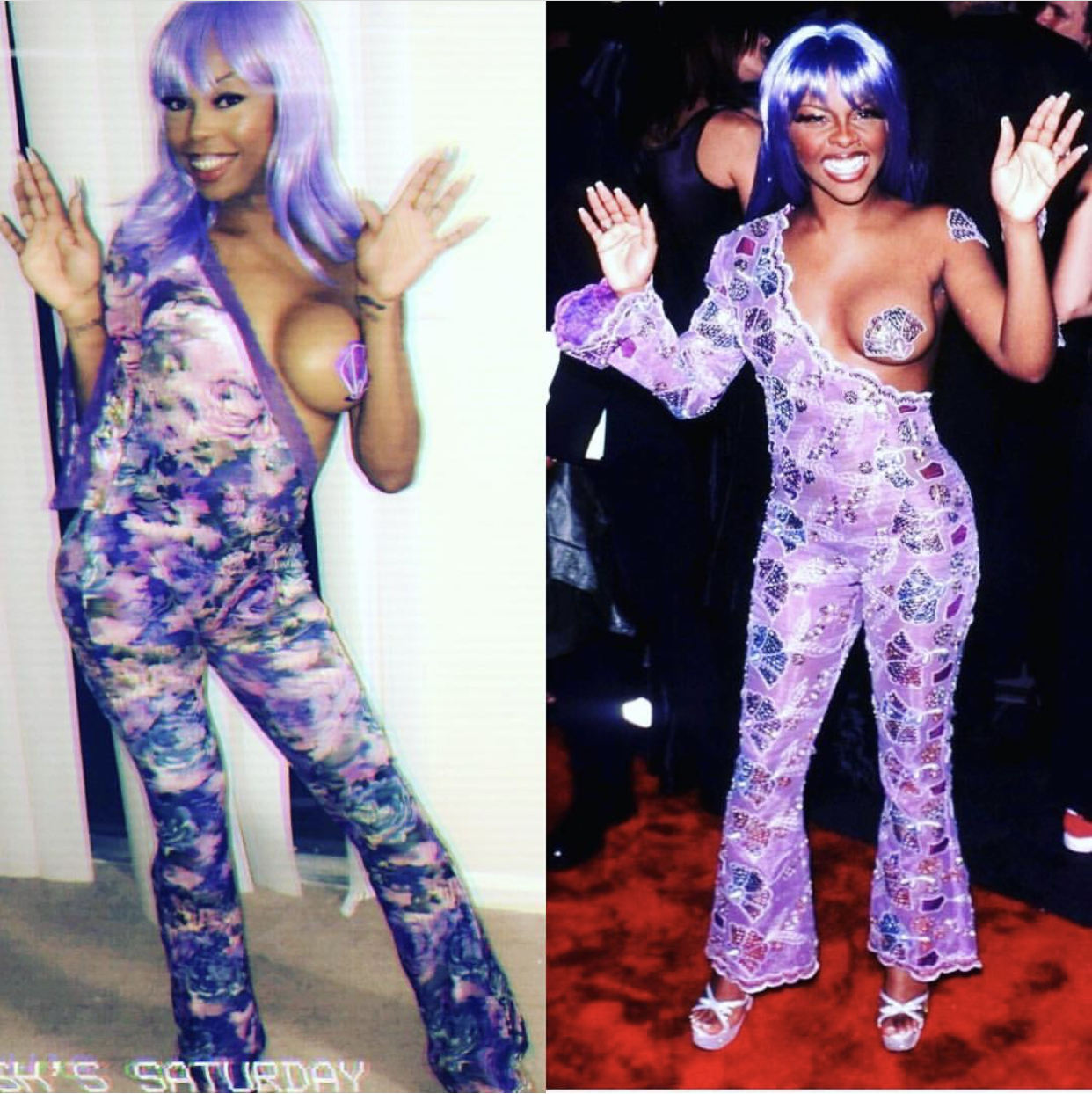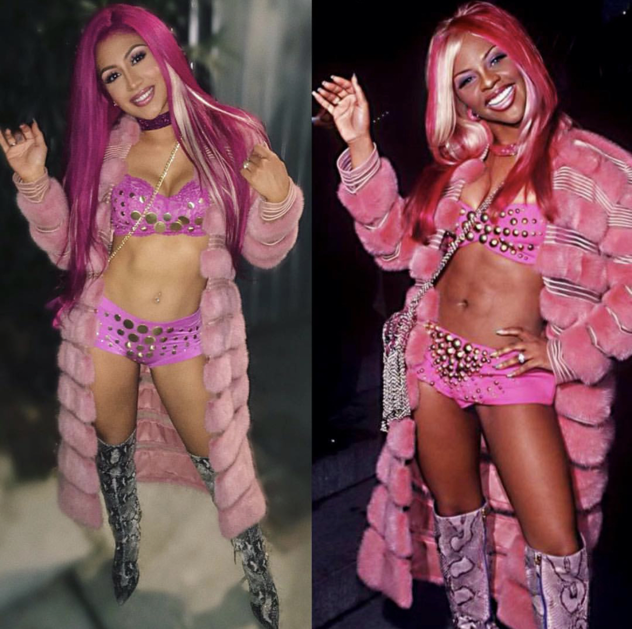 Being in college and low on funds, I learned to “make do with what I have”. Halloween costumes sold at stores are kind of expensive, typically running from $30 to almost $80 in some cases. Creating your own costume is honestly cheaper and more fun than buying one already put together for you because you get to add your own flare and creativity. DIY costumes have grown in popularity over the years as people have been going ALL types of extremes to achieve the looks of their favorite characters, memes, and celebrities! I noticed that Rihanna and Lil’ Kim’s looks over the years appear the most on the streets during Halloween because they have carry such huge influences in the fashion industry. Kim and Rih have given us such daringly sexy looks that have always turned heads and stuck in our minds which is why they are labeled as fashion icons. Each year, everyone goes all out trying to mimic their most iconic looks. Let’s get into this year’s best recreations!