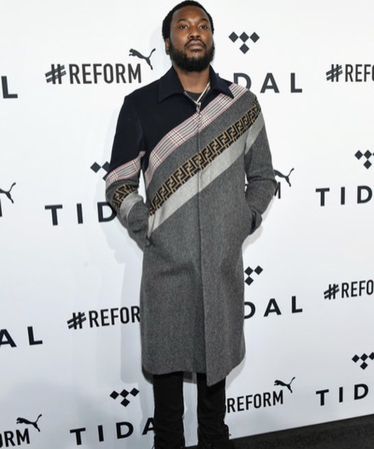 Meek Mill donned a $2,890 Fendi trench to the Tidal x Brooklyn concert.