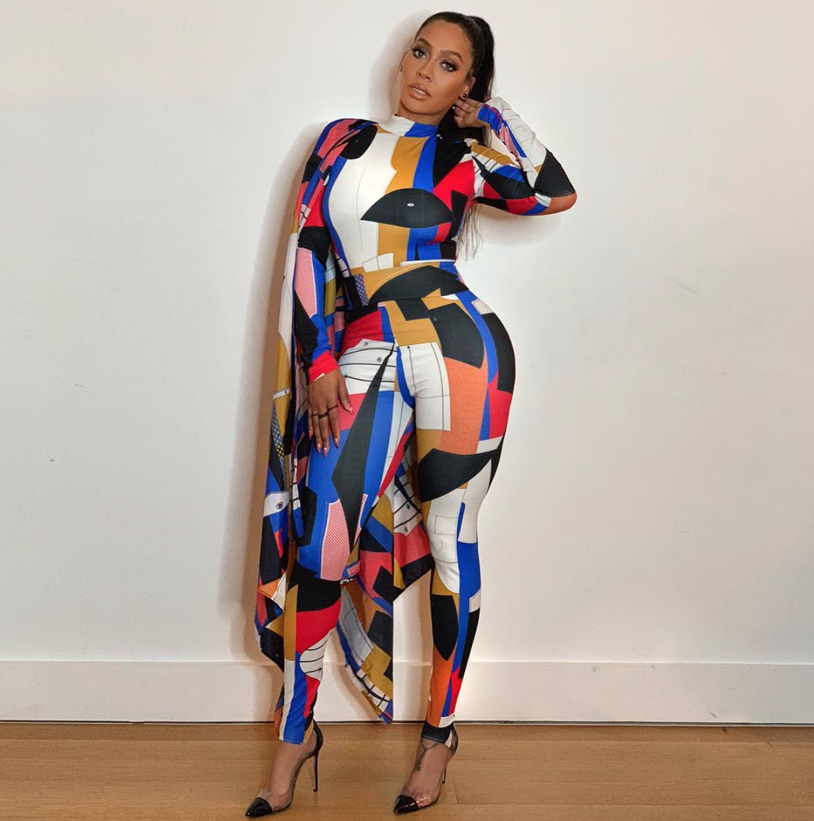 Come on, Lala! Ms. Anthony showed off her figure in a printed Pyer Moss look rocking her signature sleek ponytail. She killed this look, so bomb!