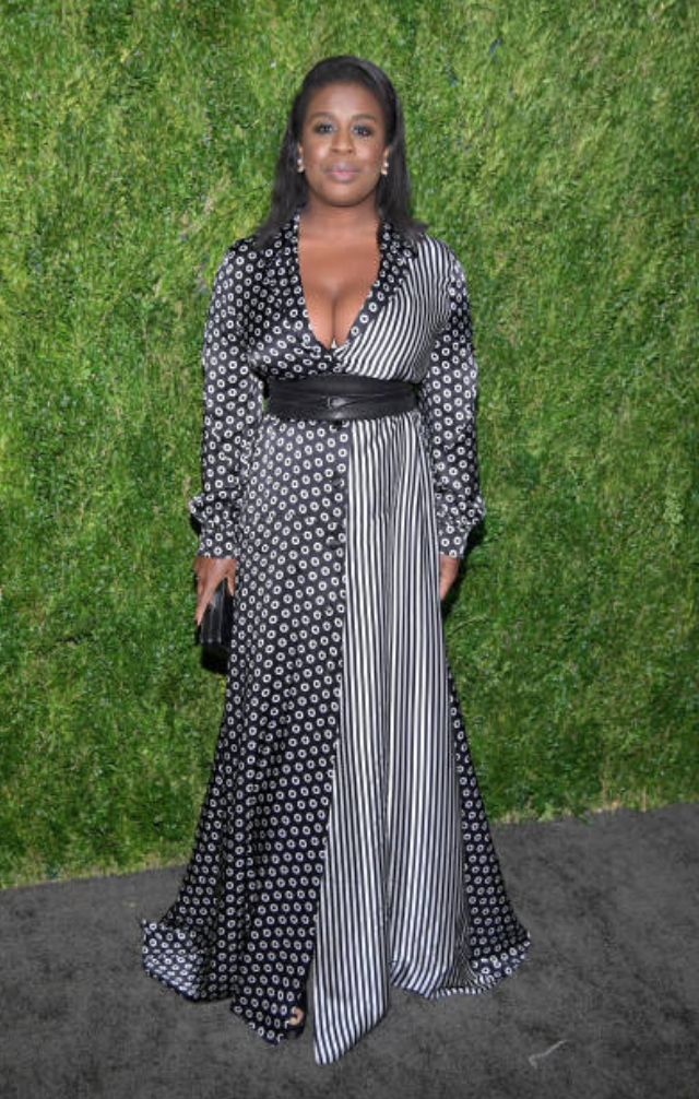 Last, but not least Uzo Aduba wore a mixed print Jonathan Cohen dress with a leather waist belt. Elegant!