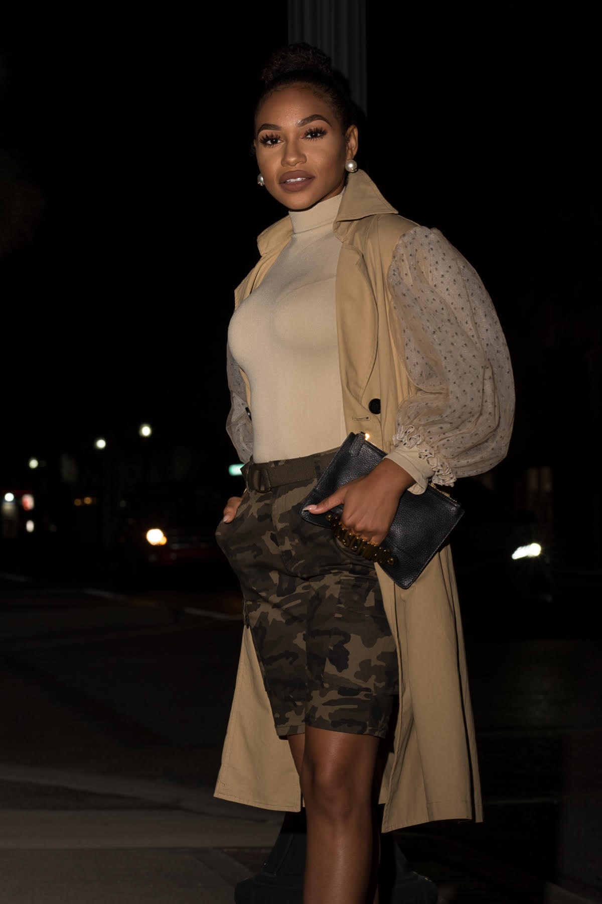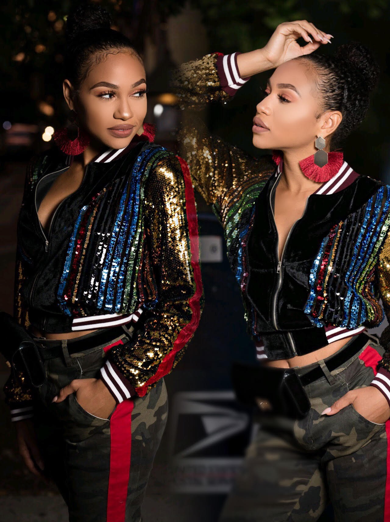 Camo pushes street style culture to the max. Its #BadAzz with femininity and disruption. We’re taking military garment and combining a military mindset with a lady like styling approach for unpredictable contrast.