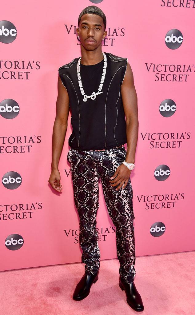 Winnie Harlow made history as the first model with vitiligo to walk the VS show last night. Before that she popped by the carpet to show off her stems wearing a fringe Dundas dress.