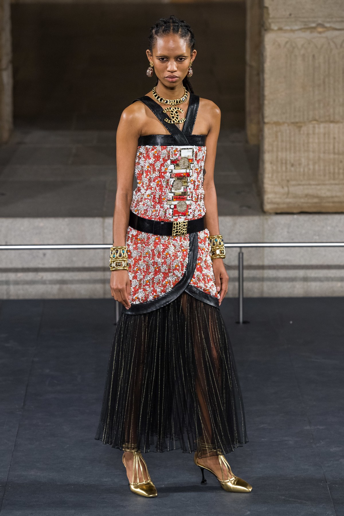 The Chanel Métiers d’Art 2019 collection was very much Egyptian-inspired as models were seen strutting with black eyeliner and all gold everything. Even some of the models have their legs painted in gold! Karl Lagerfeld truly knows how to get into a theme as the show was held at the Temple of Dendur at The Met which showcases the architecture of an ancient Egyptian temple. Of course, a Chanel collection would not be a true Chanel collection without the use of the famous tweed material. Lagerfeld references a trip through the times with ancient, classic Chanel, and futuristic references through the Métiers d’Art 2019 collection. Also, you can’t wrong with using Pharrell as a model.
