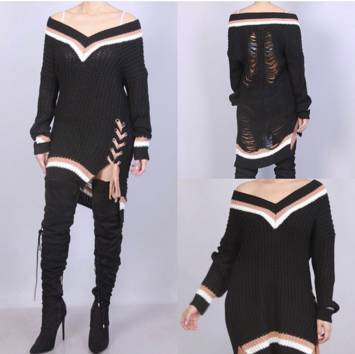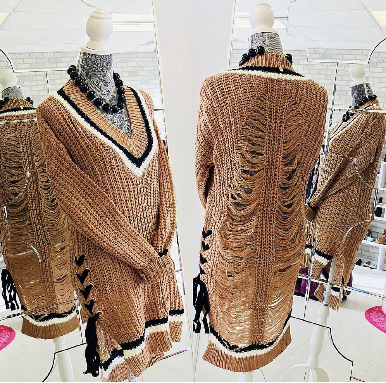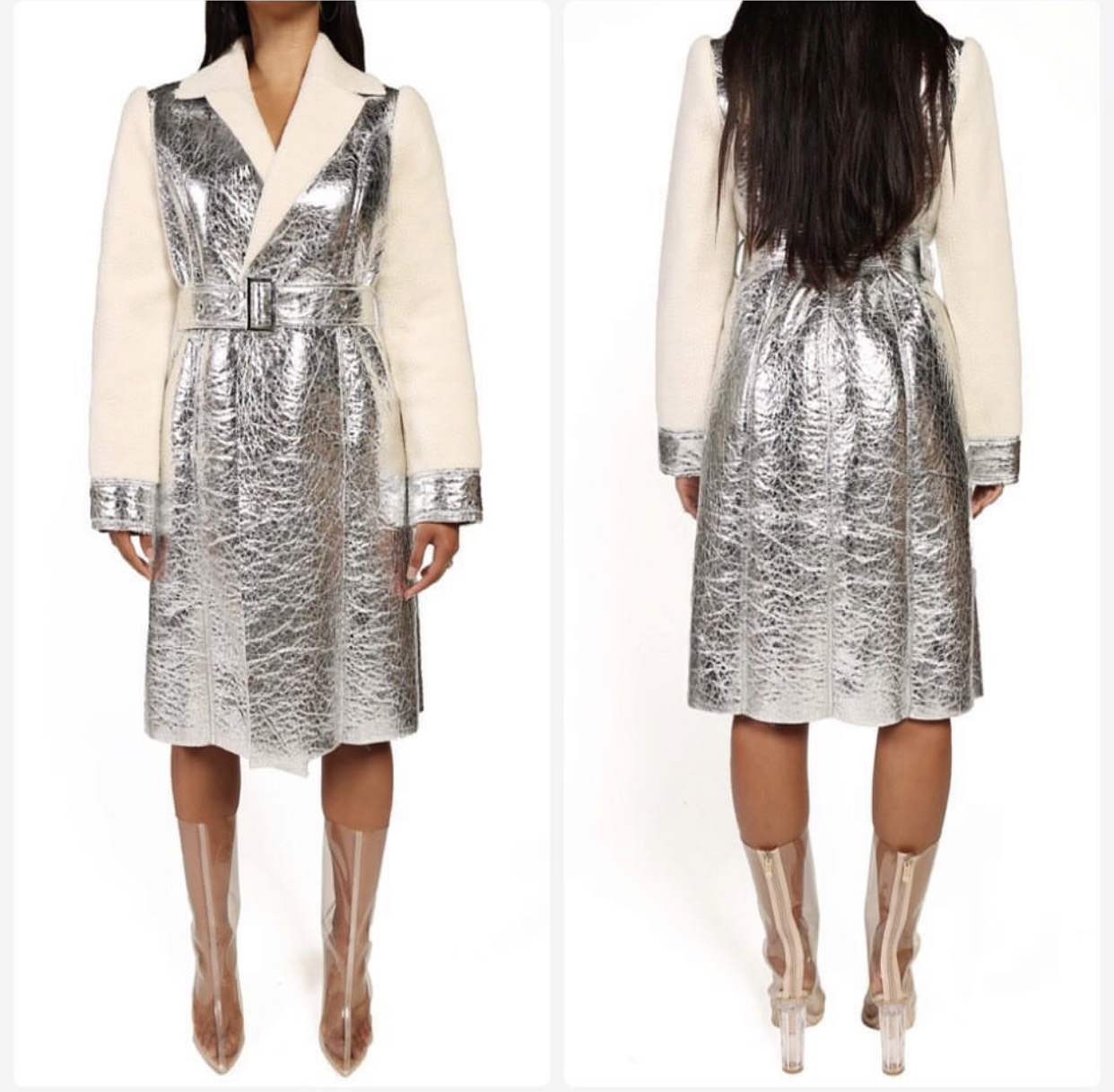 Pieces skew slightly conservative with a twist: think a distressed sweater dress or a trench cast in silver with sheer sleeves!