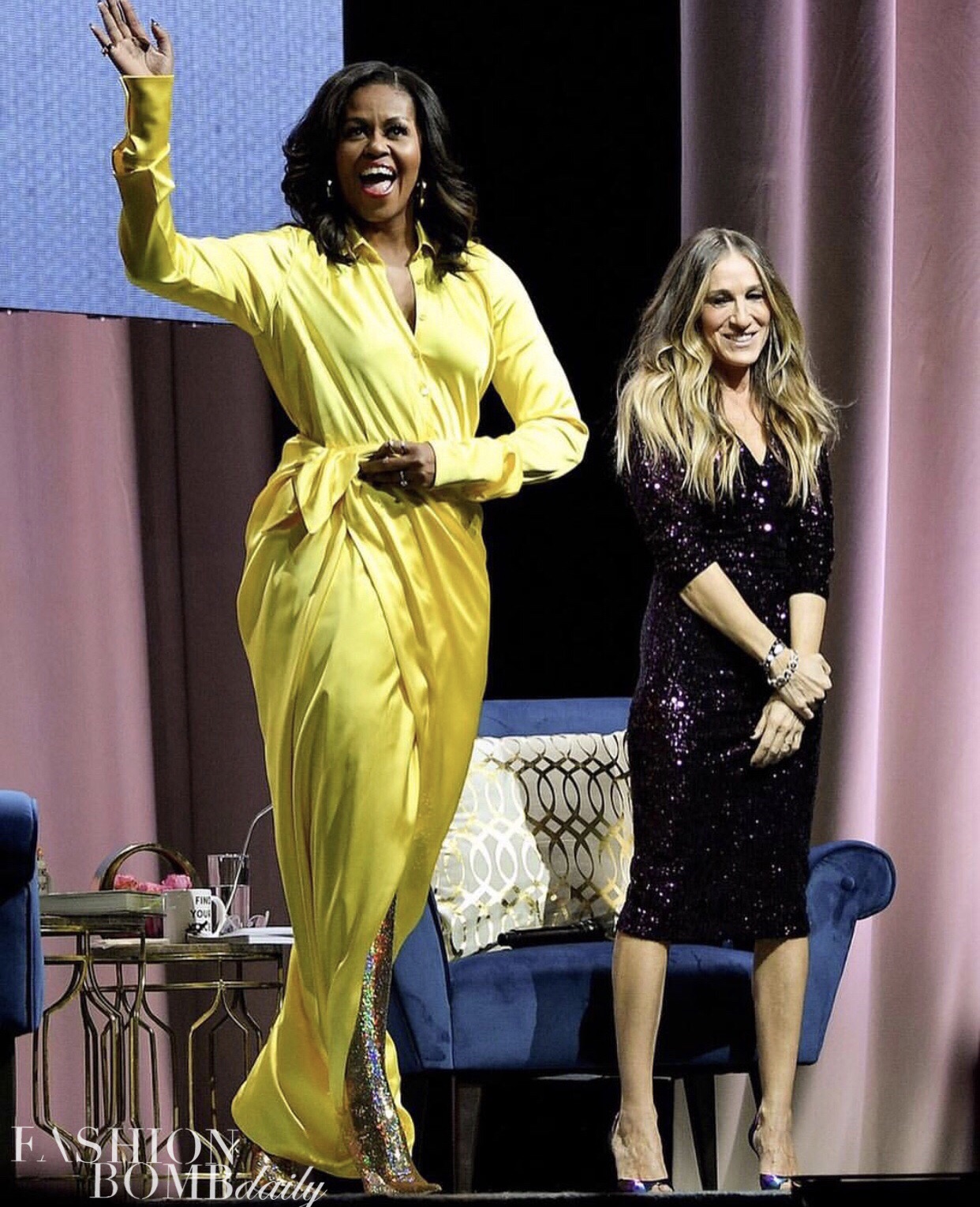 While she skewed somewhat safe during her reign as FLOTUS, wearing J.Crew and Kitten Heels, she slipped on a Balenciaga Runway Spring 2019 look for her latest Becoming talk in Brooklyn with Sarah Jessica Parker: